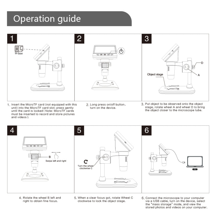 1. Pixel: 1080P2. Magnification: 1000x3. Resolution: 1920*1080,1280*960,640*4804. LDE light: 8LED5. Focusing range: 0-40mm6. Picture format: JPG7. Video format: AVI8. Support... Read more
