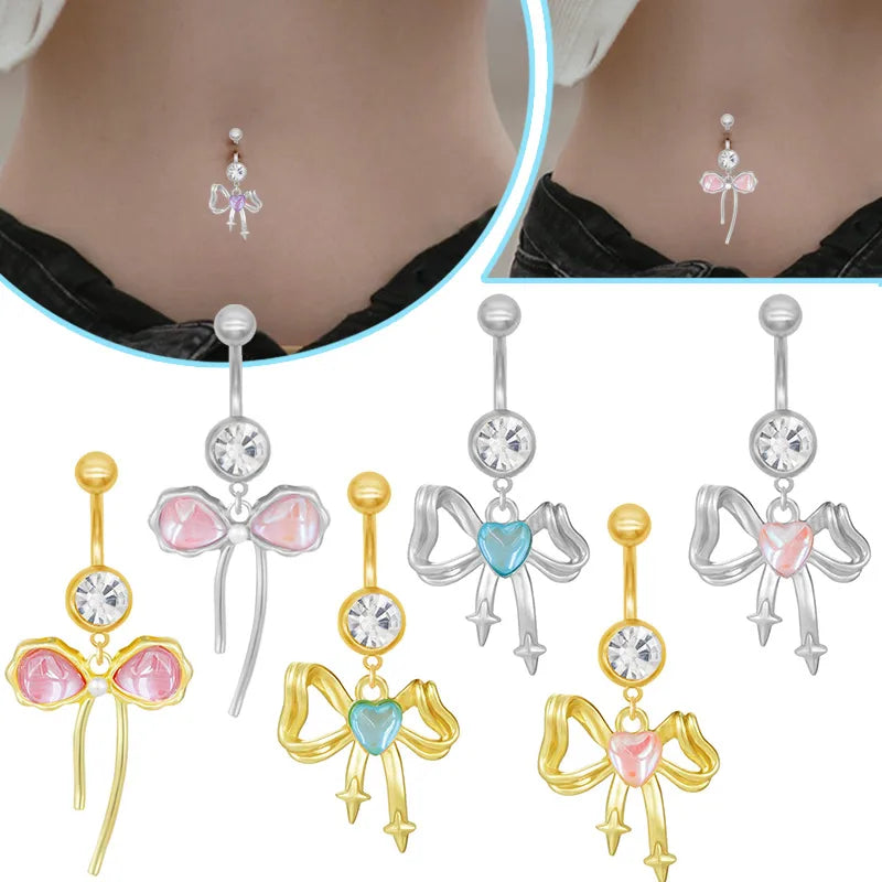 1 Piece Belly Rings Princess Cute Shiny Bow Knot 316 Stainless Steel Arylic Alloy Inlay Acrylic Glass White Gold Plated Gold Plated