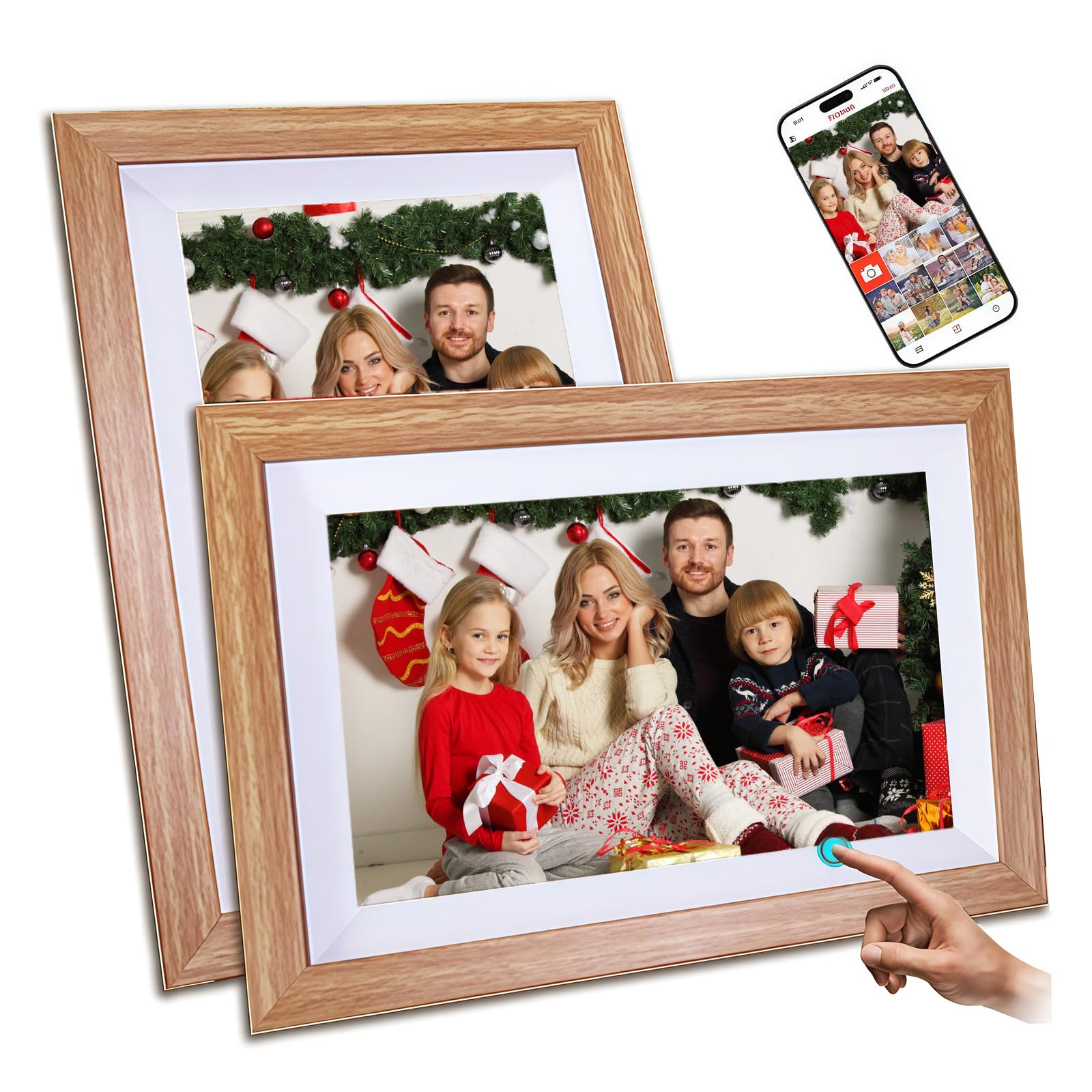 10.1" HD IPS WiFi Digital Photo Frame ? Oak Finish, 32GB, Auto-Rotate, Share Photos & Videos via App