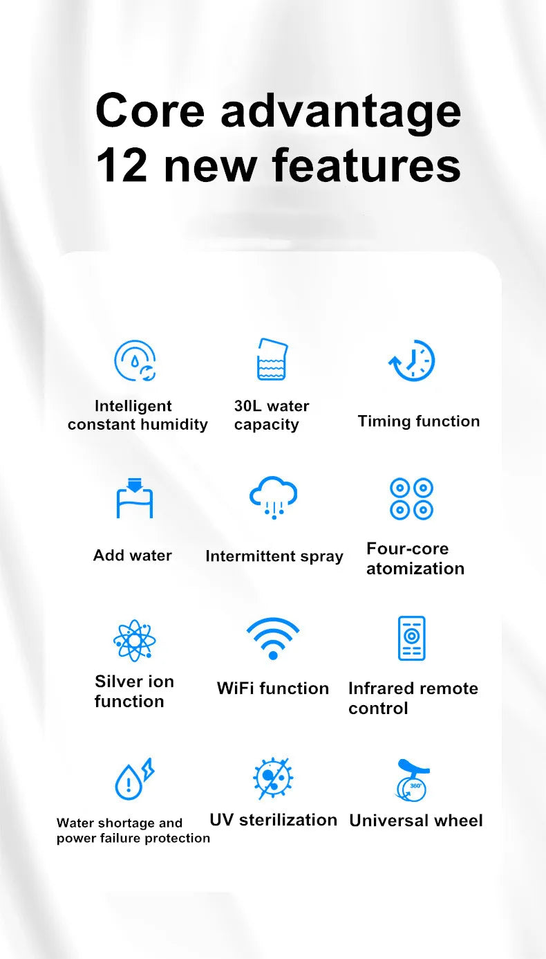SPECIFICATIONSBrand Name: SUSWEETLIFECapacity: >10L,30LCertification: ceClassification: HumidificationCoverage Area: >60㎡Function: Ultrasonic SterilizeFunction1: UV functionFunction2: SmartHign-concerned Chemical: NoneHumidification Method: ultrasonicHumidity Control: Remote ControlInstallation:... Read more