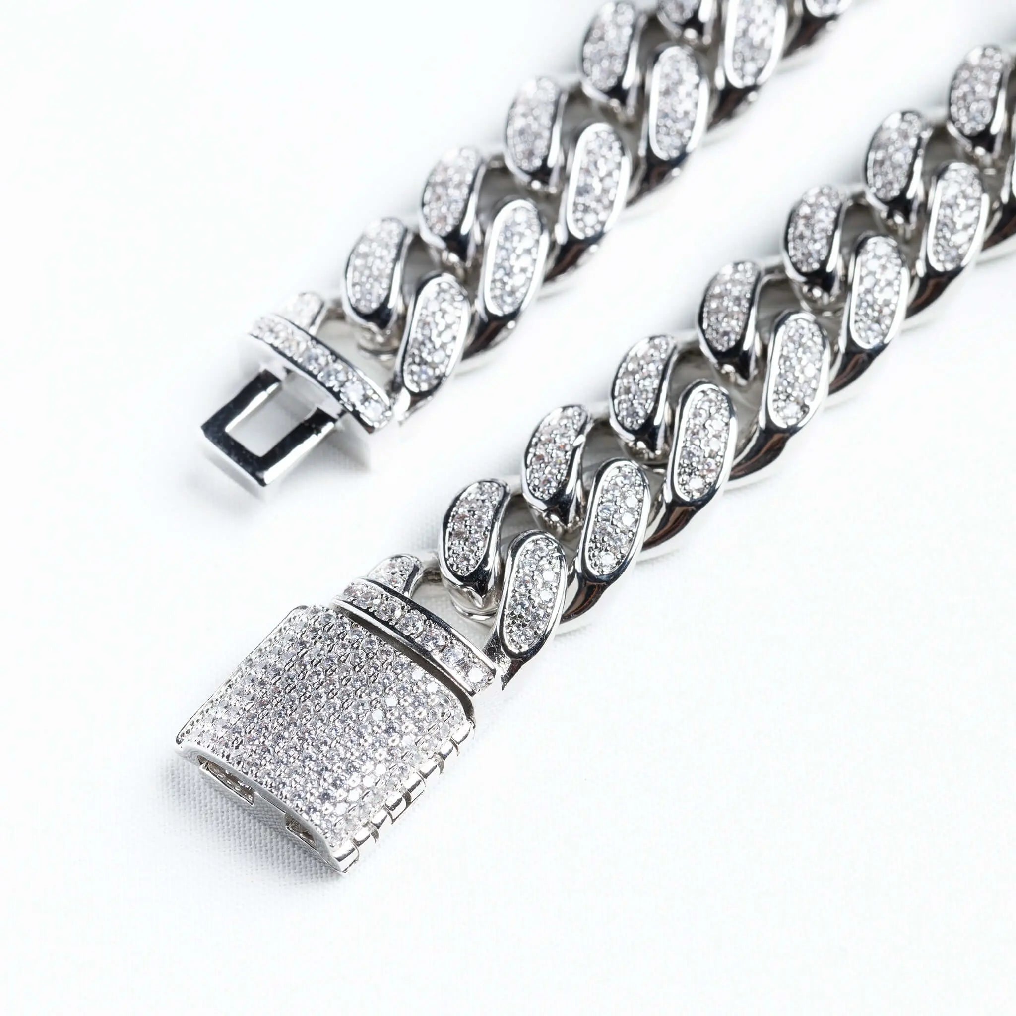 12mm Iced Miami Cuban Chain + Bracelet - White Gold