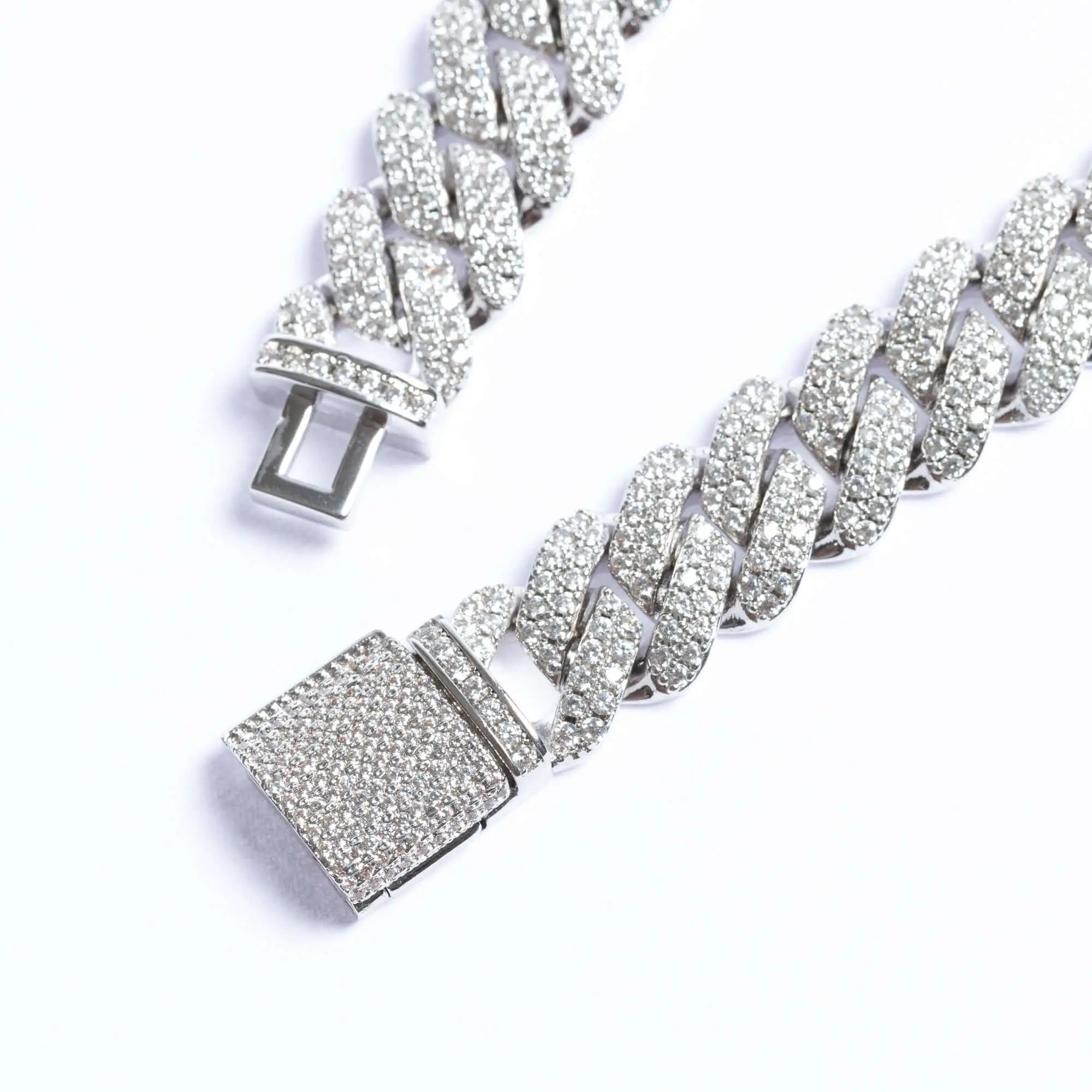 Elevate your look with our 12mm Iced Prong Cuban Bracelet crafted from rhodium plated brass and completed with precision set... Read more
