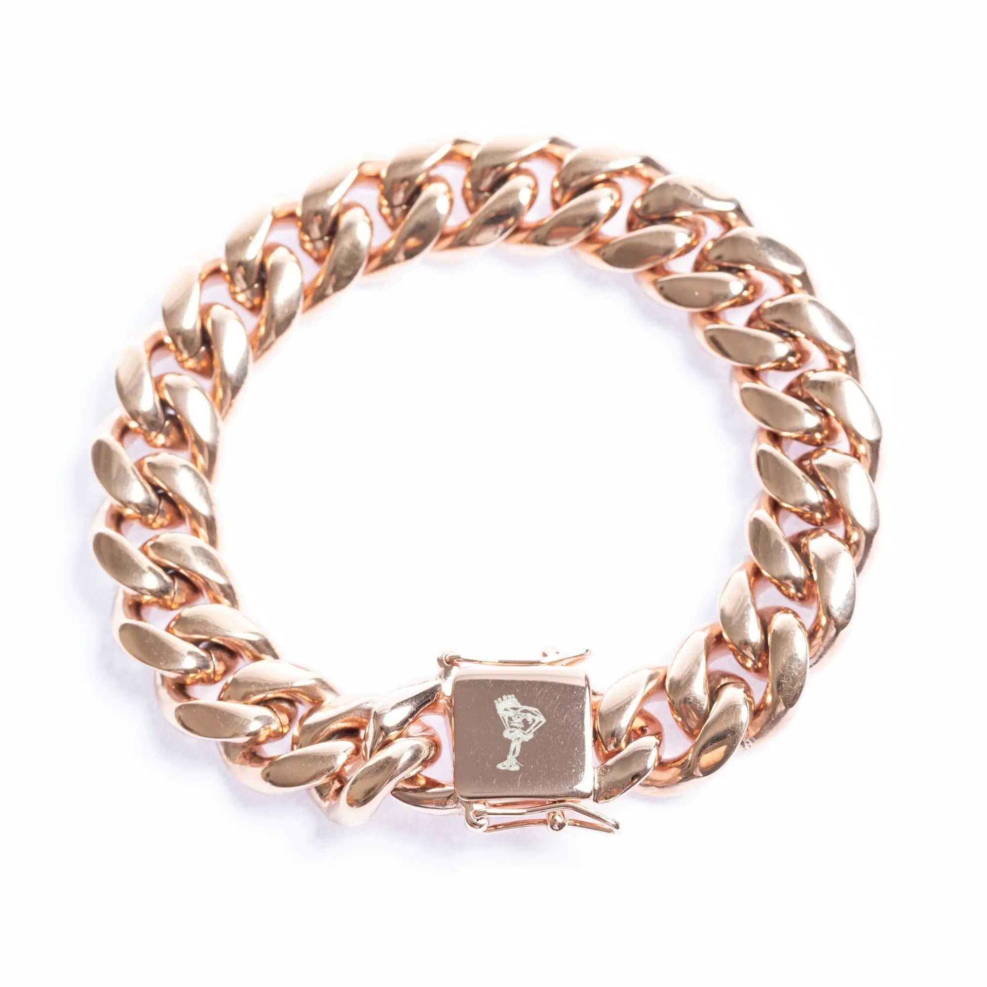 Our Men's Rose gold 14mm miami cuban bracelet is crafted from robust stainless steel and completed with rose gold plating.... Read more
