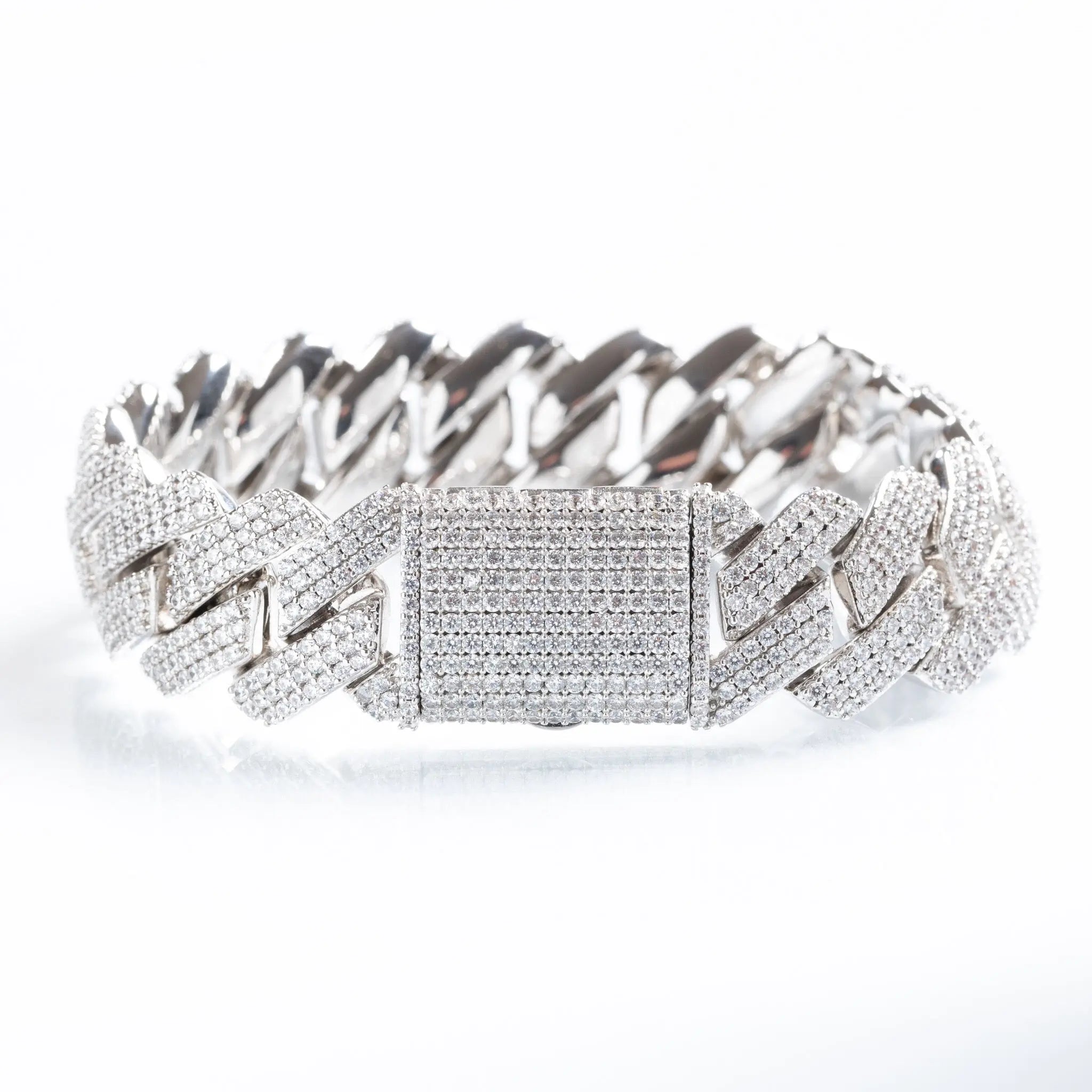 19mm Iced Prong Cuban Bracelet - White Gold