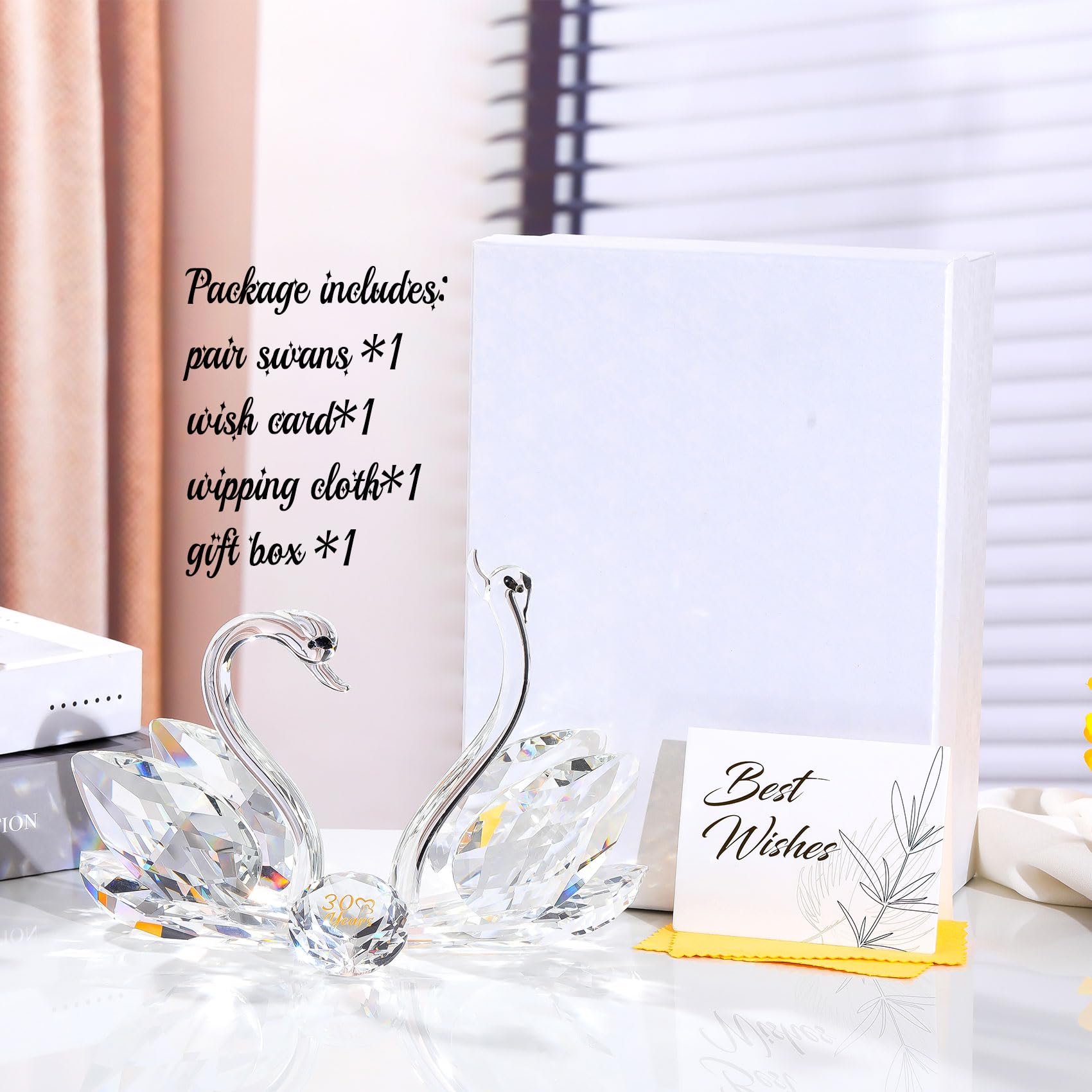 2 Pcs Clear Crystal Swans 30th Wedding Anniversary Romantic Gifts for Couples, Glass Pair Swans Collectible Figurine Ornaments 30 Years Love