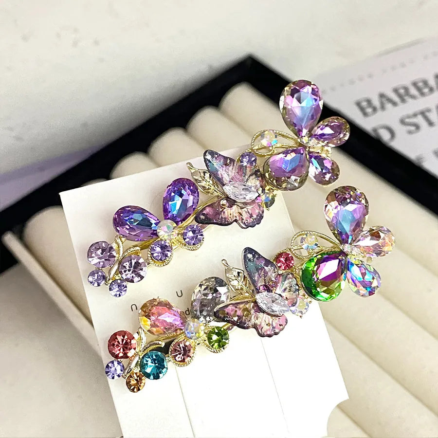 2025 New Crystal Barrettes New Women's Press Clip Crystal Butterfly Barrettes Tied-up Hair Ins Style Simple Fashion