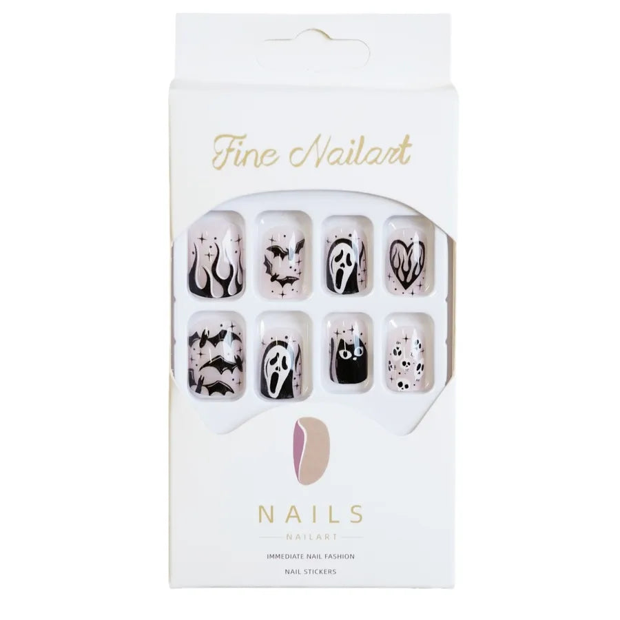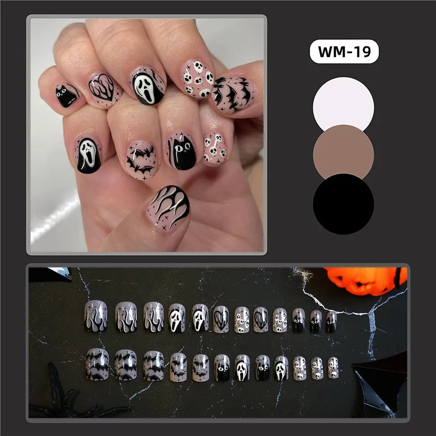 24 pcs/box Wholesale Ghost Black Cat Patterned Nails Short Halloween Press on Nail