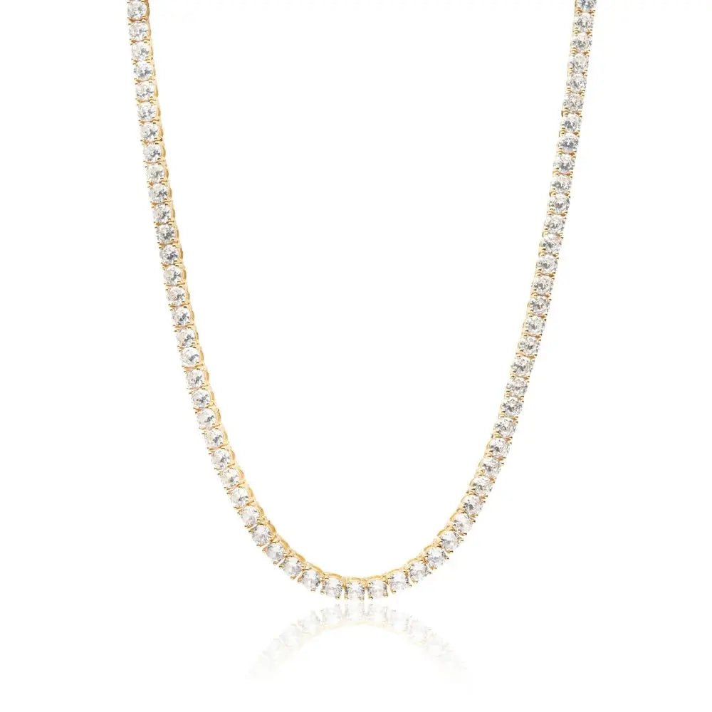 Our men's 5mm tennis chain is crafted from gold plated brass and completed with precision-set cubic zirconia, designed to shine.... Read more
