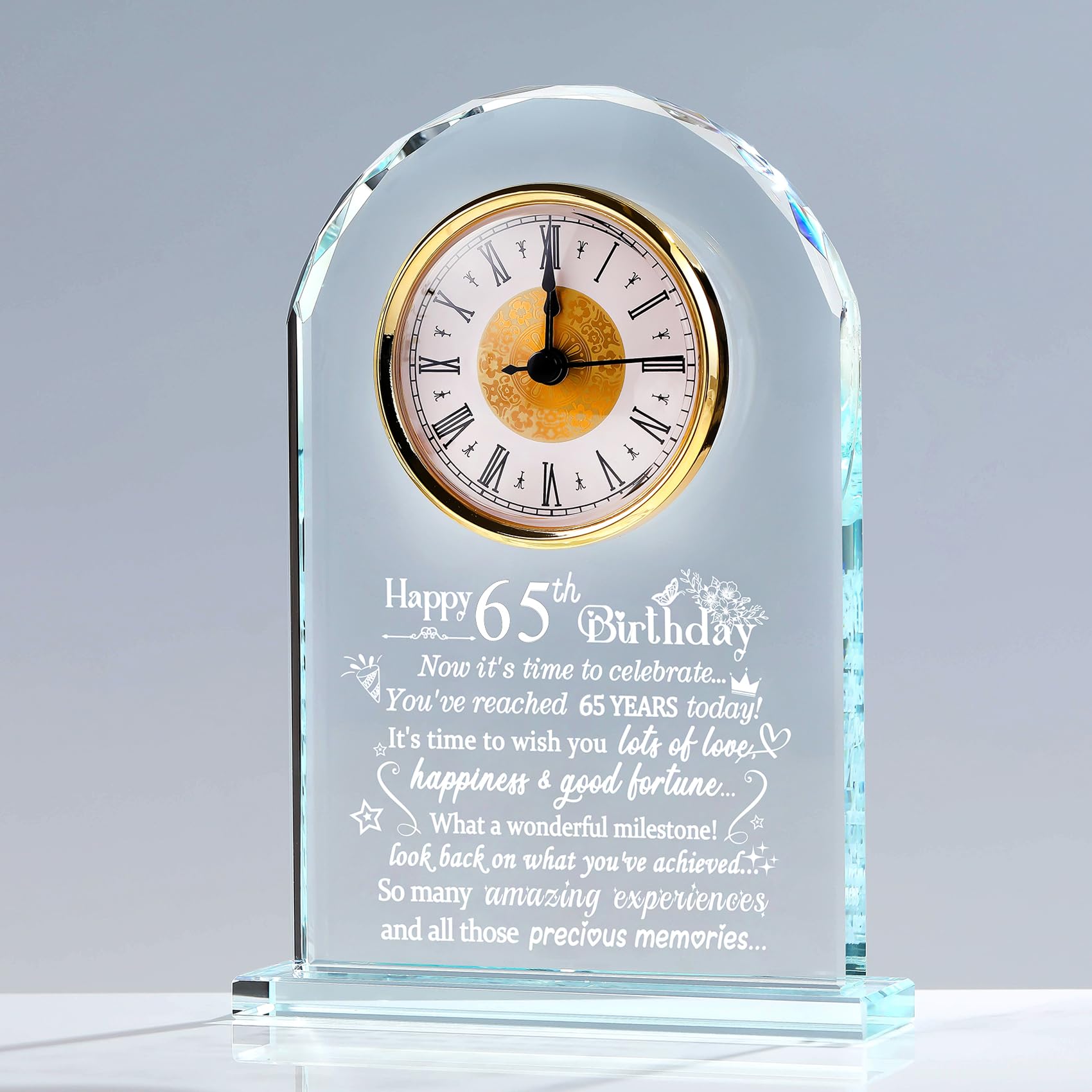 65th Birthday Quartz Clock Gifts for Women Ladies, Happy 65th Birthday Crystal Keepsake Ornament Presents for Friends Mum Turning 65 Years Old