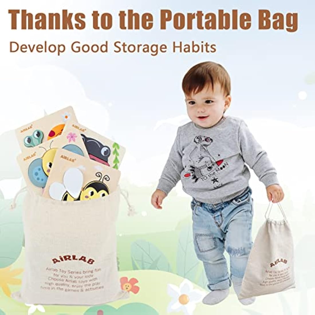 Airlab Wooden Jigsaw Puzzle for Kids, Garden Animals Chunky Shape Puzzles for Toddlers Over 1 2 3 Year Olds, Baby Montessori Preschool Educational Learning Toys for Girls Boys, Children Handmade Toys