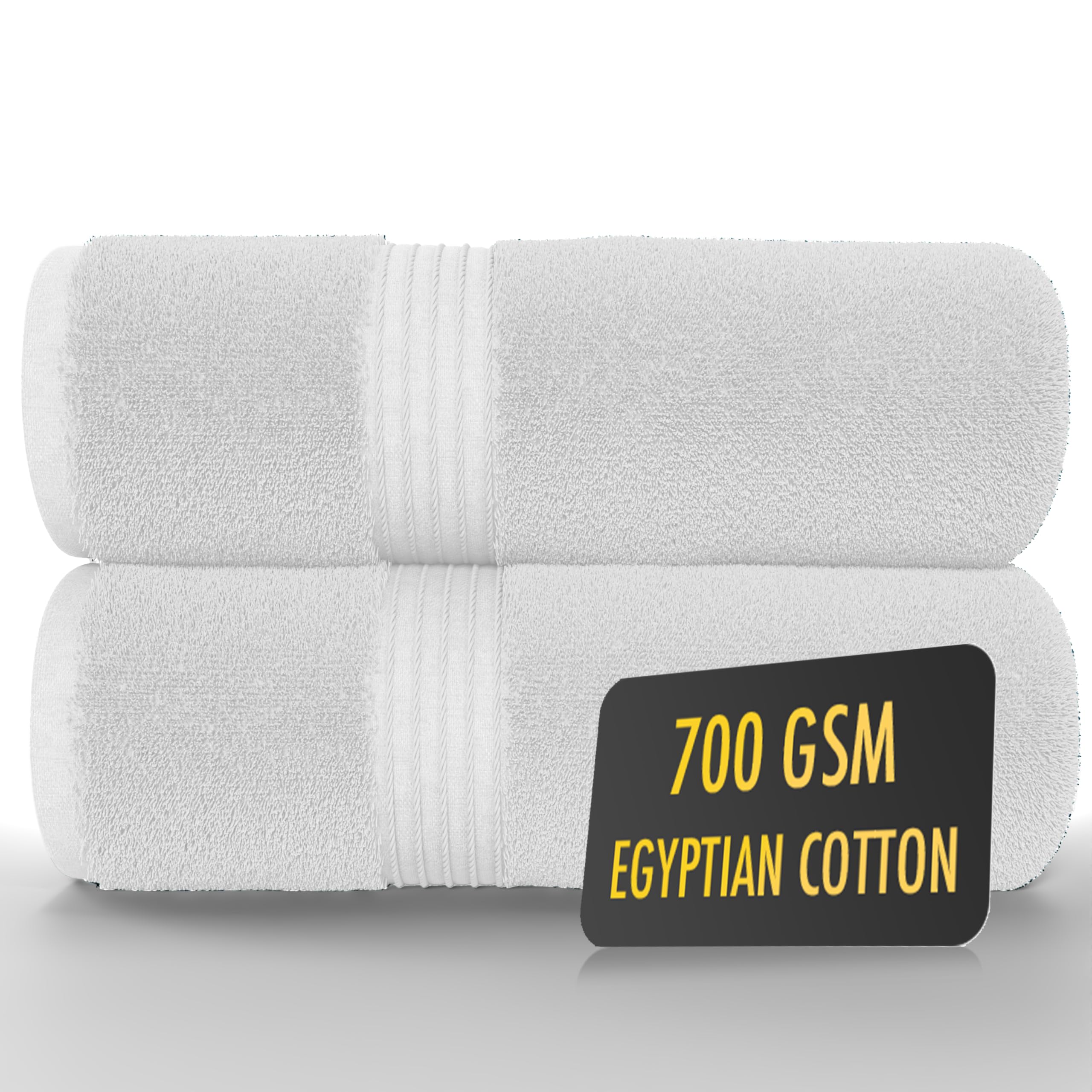 ALSAP White Bath Towels Set Of 2 (130x70cm) ? 700 GSM Super Absorbent Egyptian Cotton Bath Sheets ? Hotel Quality Quick Dry Bathroom Towels for Home,
