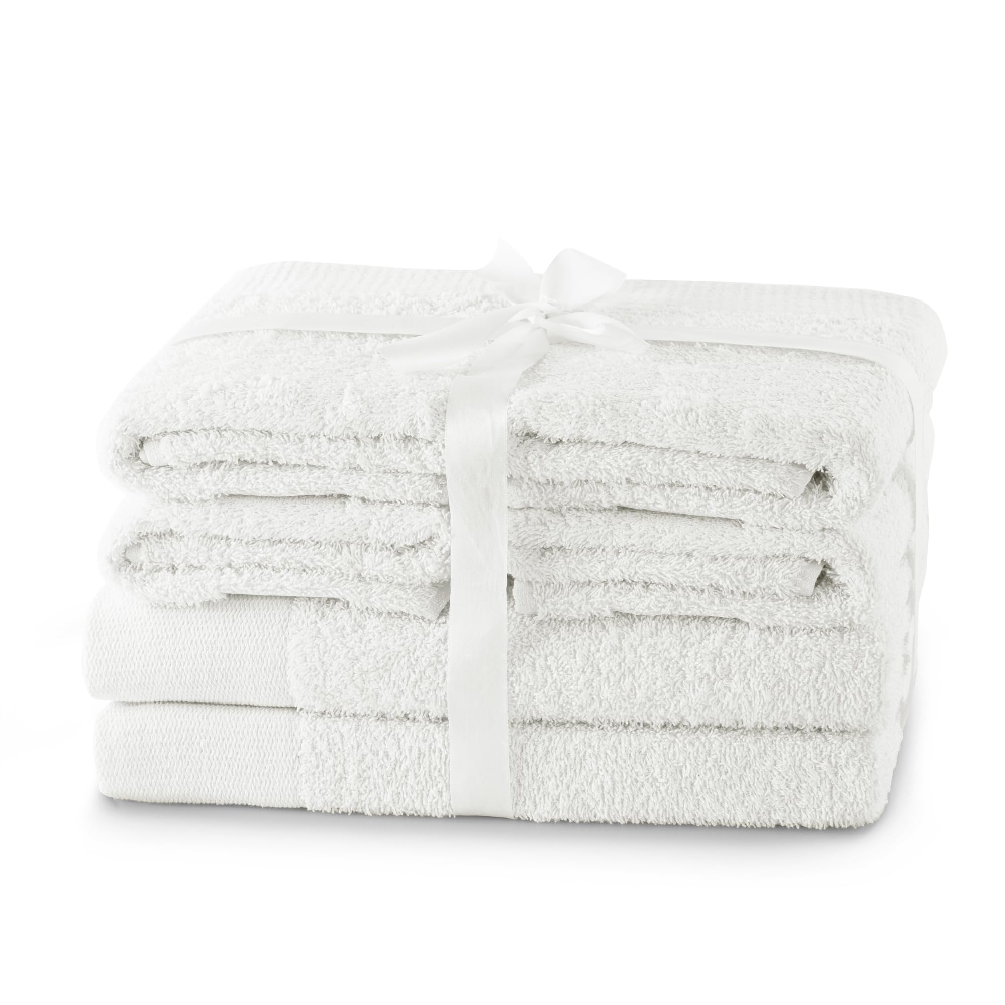 AmeliaHome Set 6pcs 4 Towels 50x100 cm and 2 Bath Towels 70x140 cm 100% Cotton Absorbent White Amari