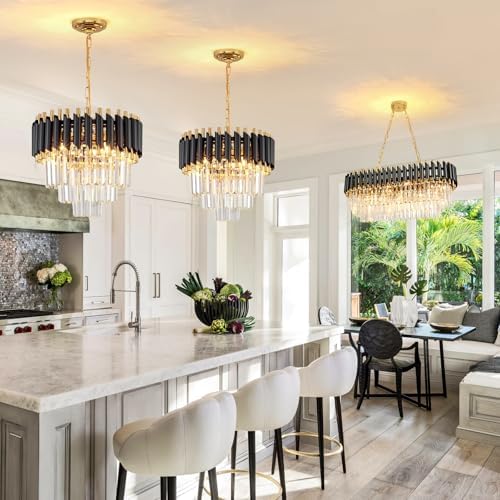 AOOCHOK Black and Gold Crystal Chandelier Pendant Light, Small Modern Crystal Chandelier for Entryway, Corridor, Balcony, Porch, Restaurant, Door Opening, E27 x 3, Φ40cm