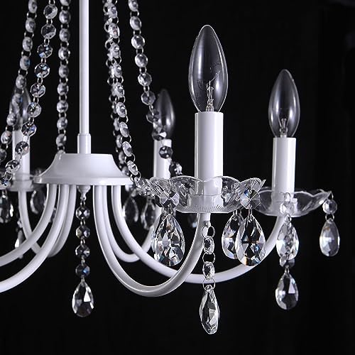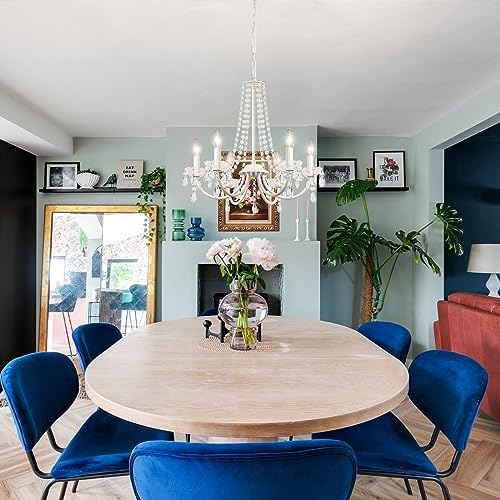 💡【Elegant Modern Crystal Chandelier】➡ The chandeliers ceiling light combines vintage and modern features with its curved arm frame design and crystal bead chain, creating a striking visual impact. Made of high-quality metal with a white finish, this chandeliers is resistant to rust and fading. 6 candle-shaped lamp holders decorated with petal-shaped and crystal embellishes can add a touch of elegance and brightness to your home. 💡【Applicable Bulbs】➡ The crystal chandelier ceiling light requires 6 x E14 bulbs, each bulb max. 60 watts, Voltage 220 - 240V. Compatible with LED, Edison, CFL, incandescent, and halogen bulbs (Bulbs Not Included). This crystal ceiling lights is dimmable when used with dimmable bulbs and a compatible dimmer switch (Dimmer Switch Not Included). 💡【Adjustable Height】➡ The bedroom chandeliers ceiling lights measures 19.68 inches in height and width, with a canopy diameter of 5.11 inches. The adjustable chain length of 59.05 inches allows you to customise the height between 25.59 inches and 84.64 inches to suit your preference or design. It can also be installed on sloped and vaulted ceilings. 💡【Widely Application】➡ This white modern chandelier brings an elegant and gorgeous atmosphere to any room, drawing the eye and becoming the focal point of the space. The chandelier is suitable for living room, dining room, kitchen, kitchen island, bedroom, hallway, lounge, entrance hall, entryway, staircase, home office, study room, or cloakroom. 💡【Easy Installation & Satisfaction Guaranteed】➡ All mounting hardware required for installation is included in the pendant light package. If you are not satisfied with our chandelier ceiling light, please feel free to contact us at any time, our customer support team is standing by to offer you a pleasant shopping experience.