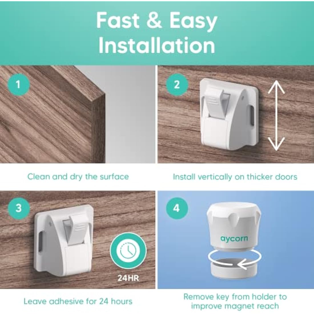 AYCORN® Magnetic Safety Cupboard Locks [10x] for Children [Includes 2X Keys] Child & Baby Safety Proofing for Kitchen, Cabinets and Drawers, 30 Second Install (No Drilling) with 3M Adhesive