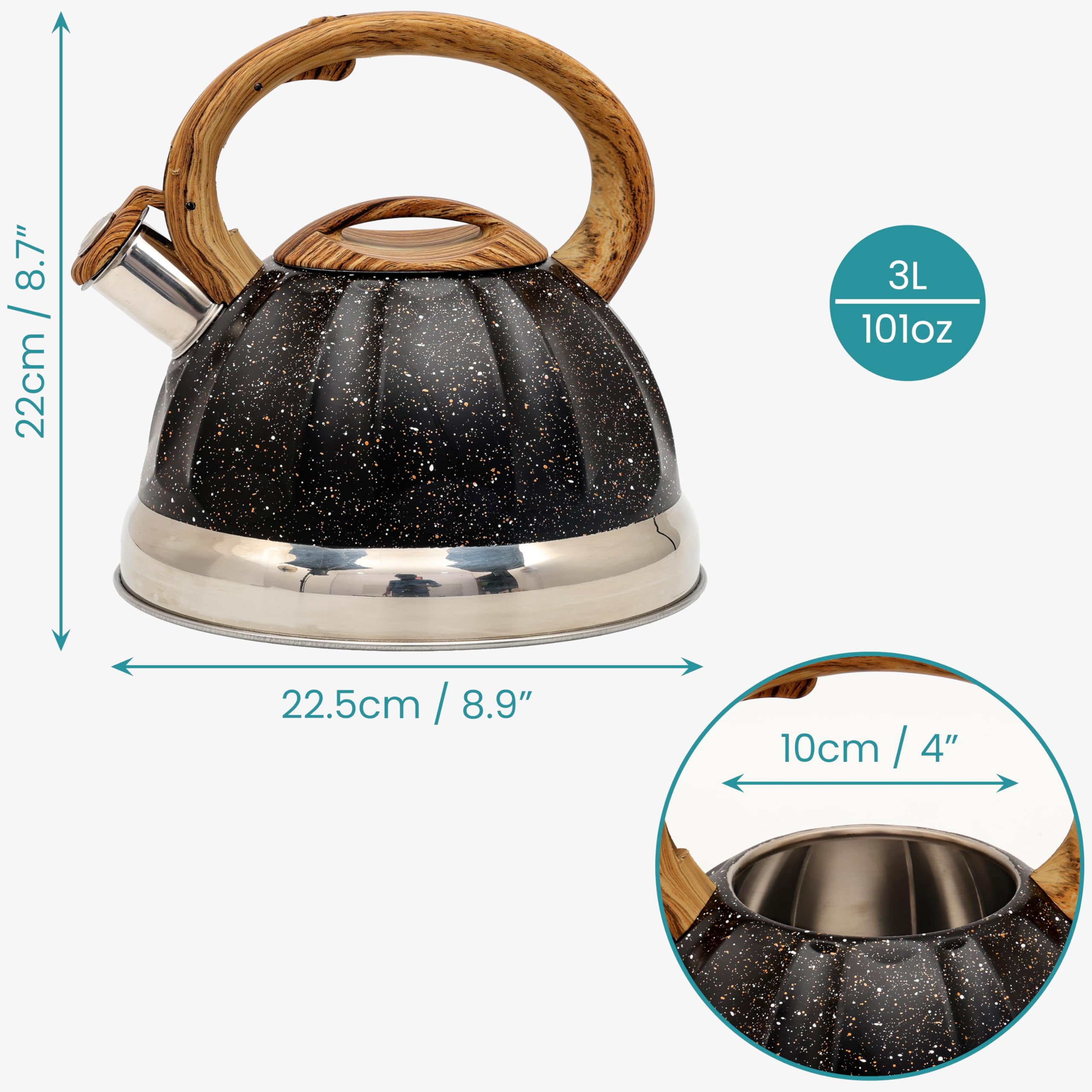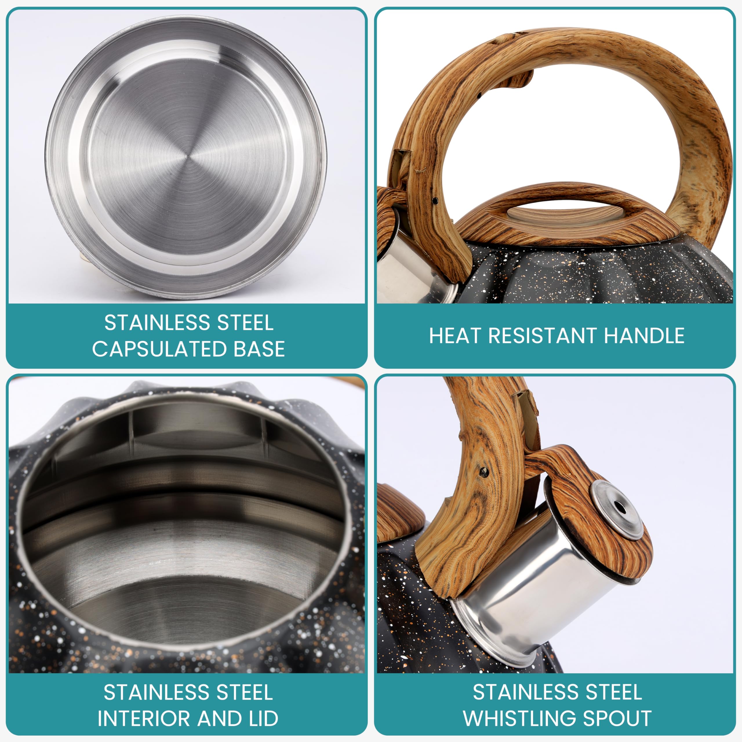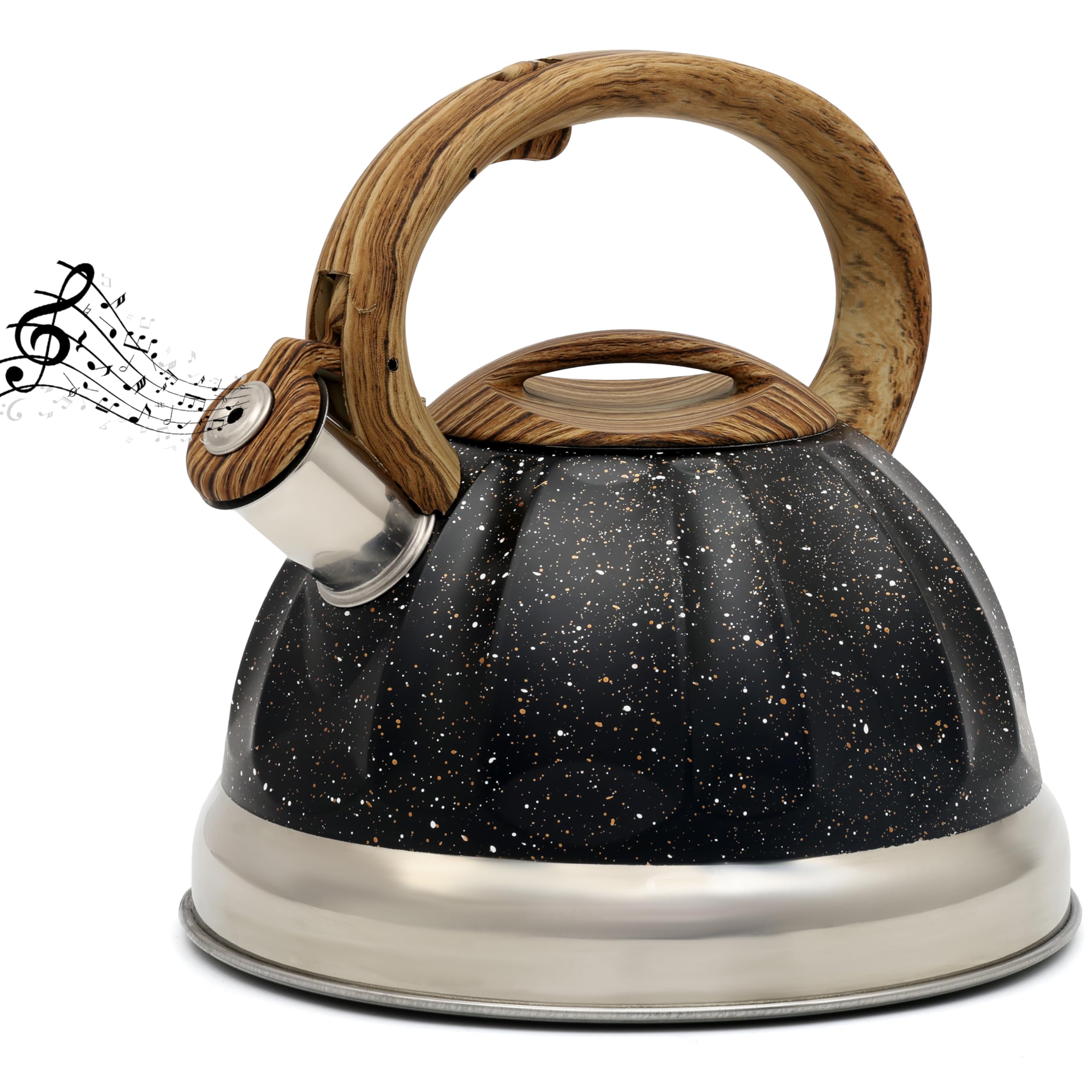 Features STAINLESS STEEL KETTLE: Made from food-grade stainless steel, our black patterned whistling tea kettle is rustproof, corrosion-resistant, durable and... Read more
