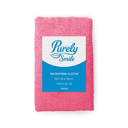 Blake & White Red Microfibre Cloths 10 Pack – Ultra Fine Reusable Cleaning Cloths for Home & Industrial Use – 90 Percent Polyester & 10 Percent Polyamide Material (37x37cm)