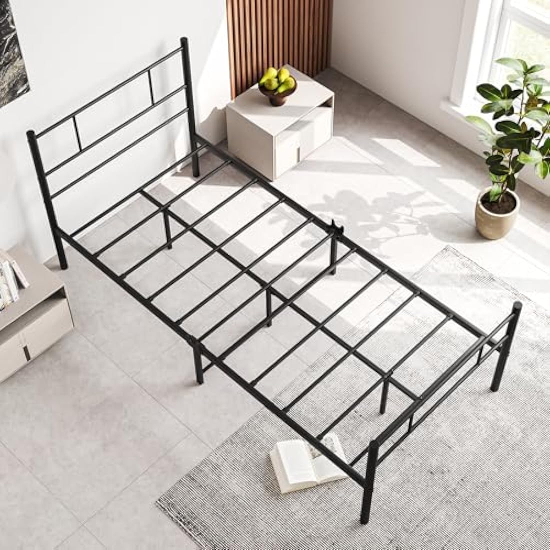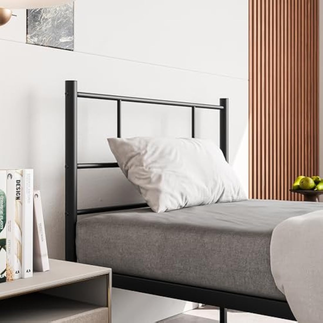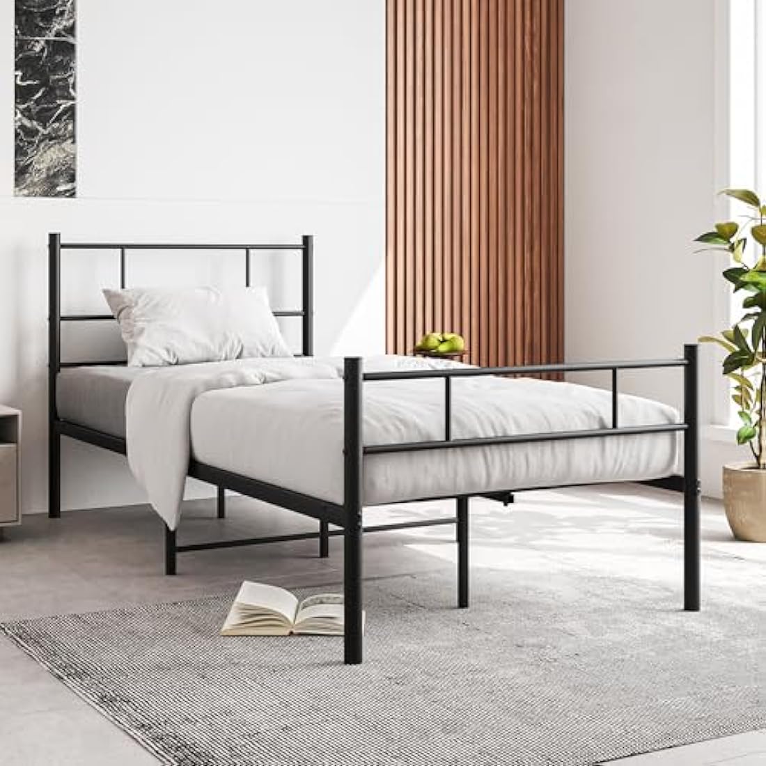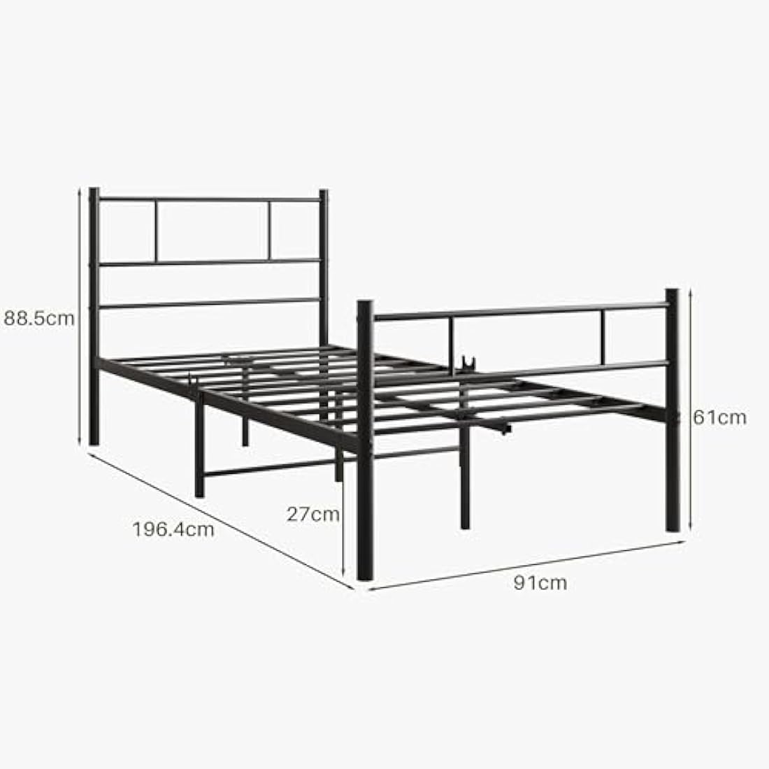 BORPHOM 3ft Single Bed Frame with Headboard,Solid Slatted Bed Base,Strong Iron Bedstead For Adults,Underbed Storage Space,Black