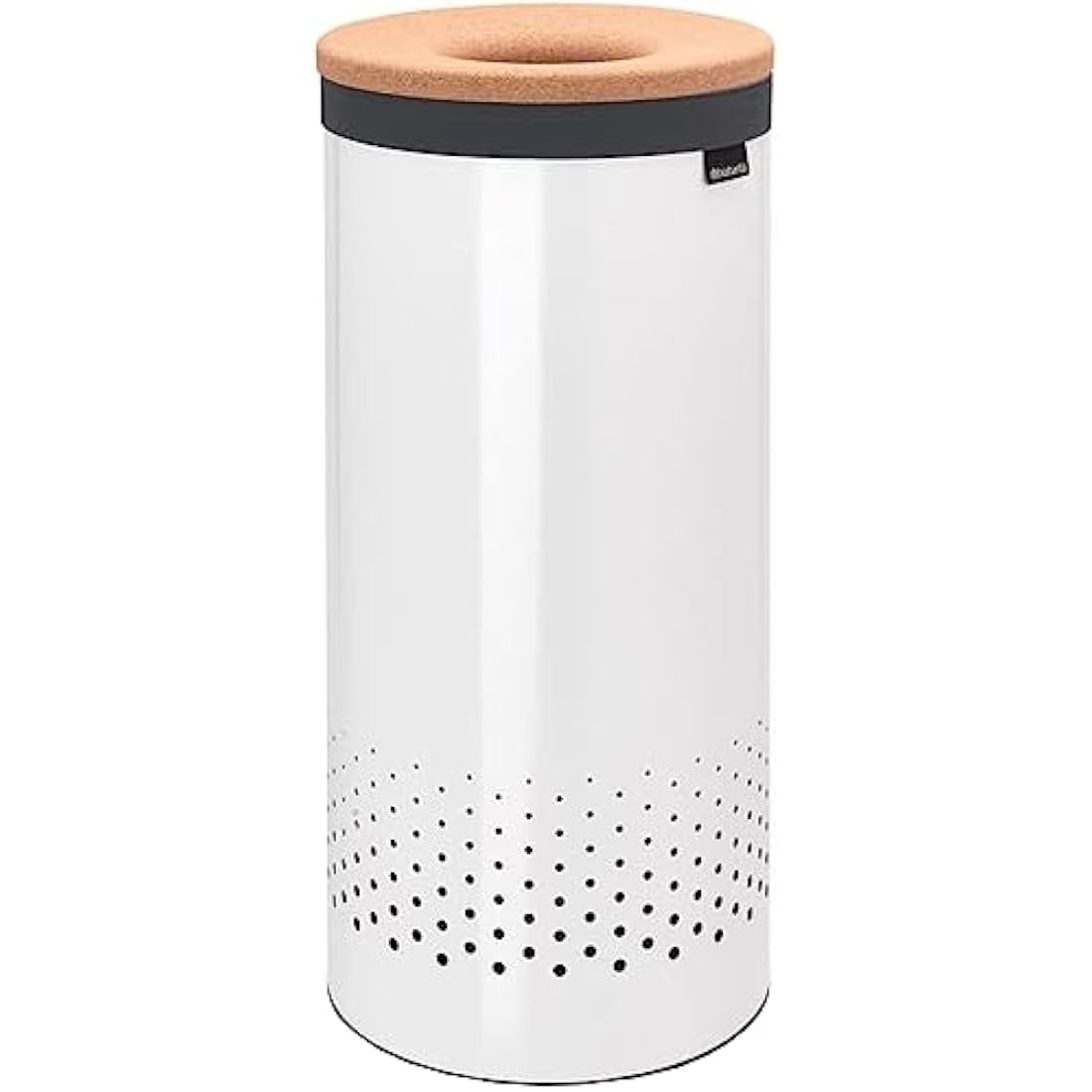 Brabantia - Laundry Bin - Cork Lid - Portable Laundry Bag Inside - Quick-drop Opening - Basket with Ventilation Holes - Non-Scratching Bottom - Corrosion Resistant - White - 35L