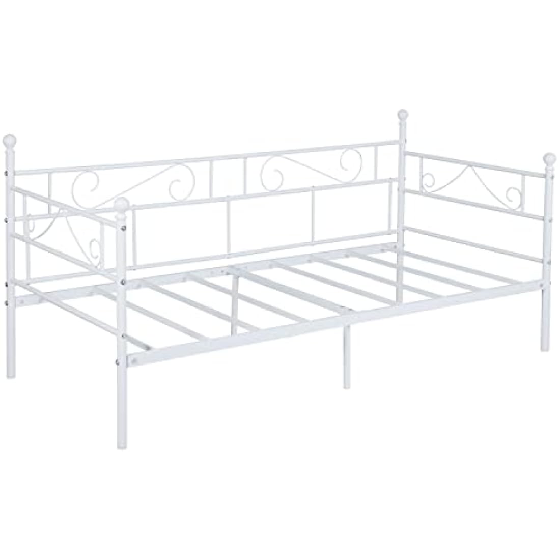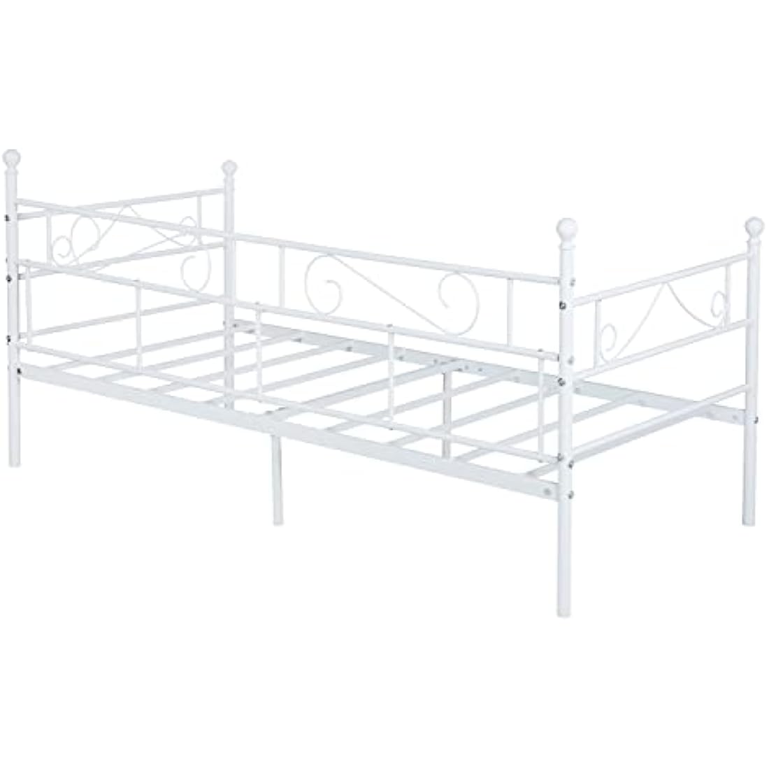 buybyroom Day bed Frame,Modern Metal Day Bed Sofa, Platform Bed Base with Headboard and Footboard Premium Stable Metal Slats for 90 x 190 mattress,White