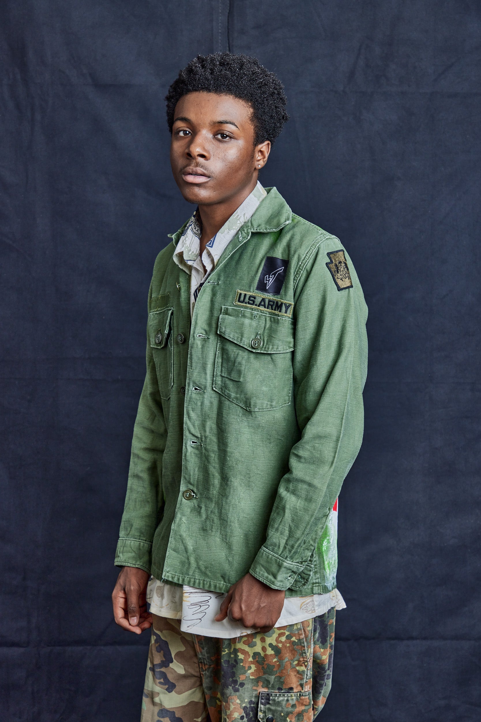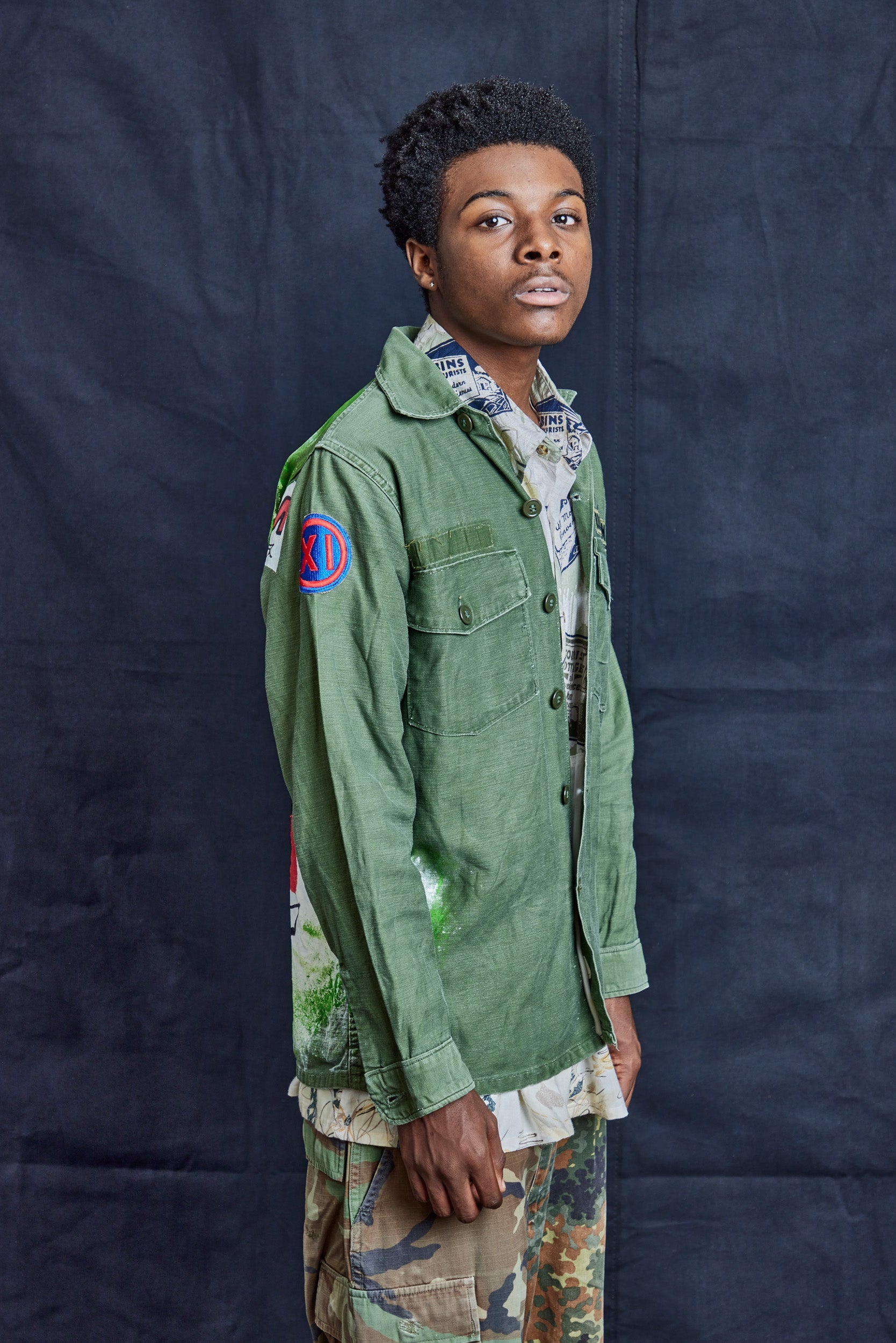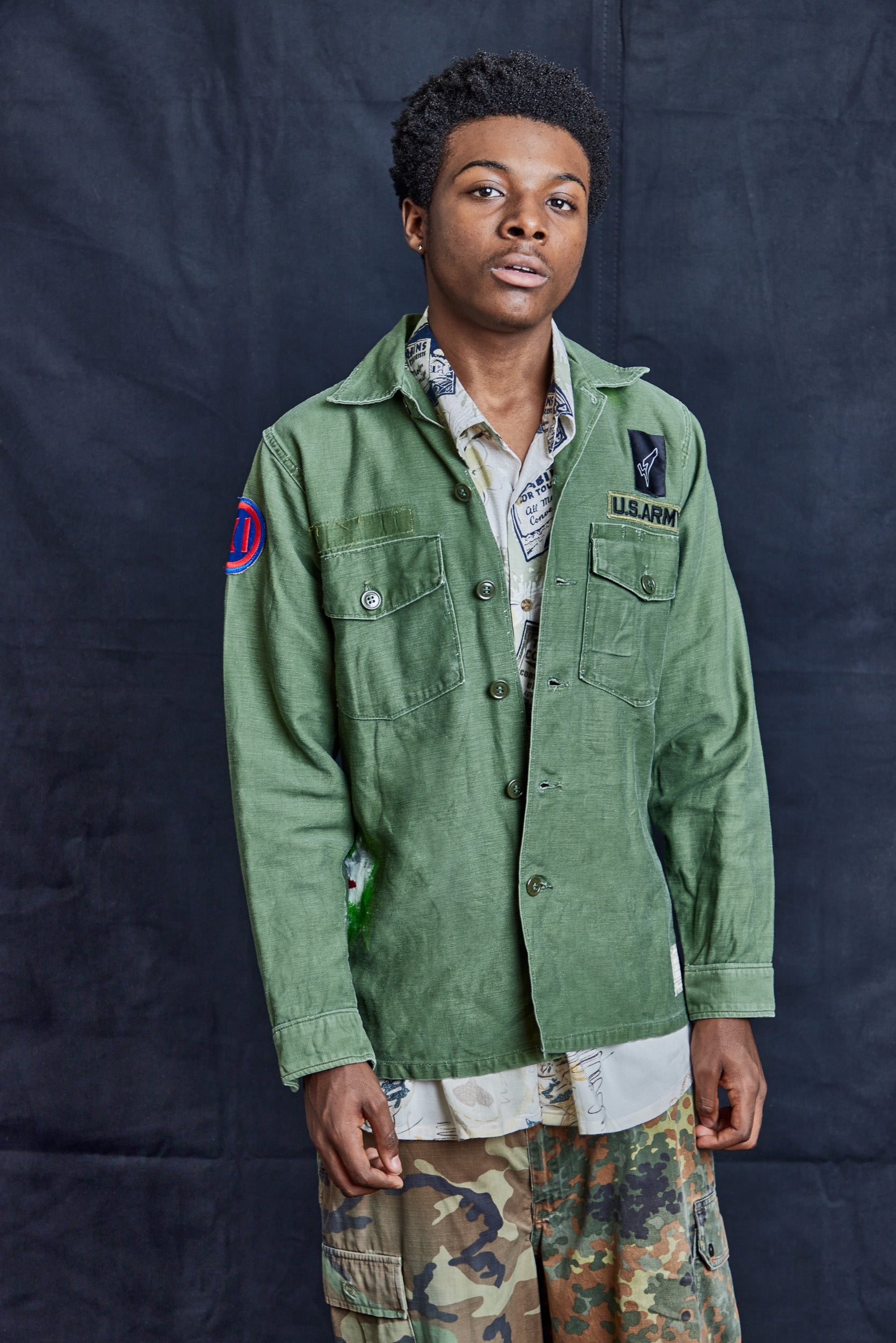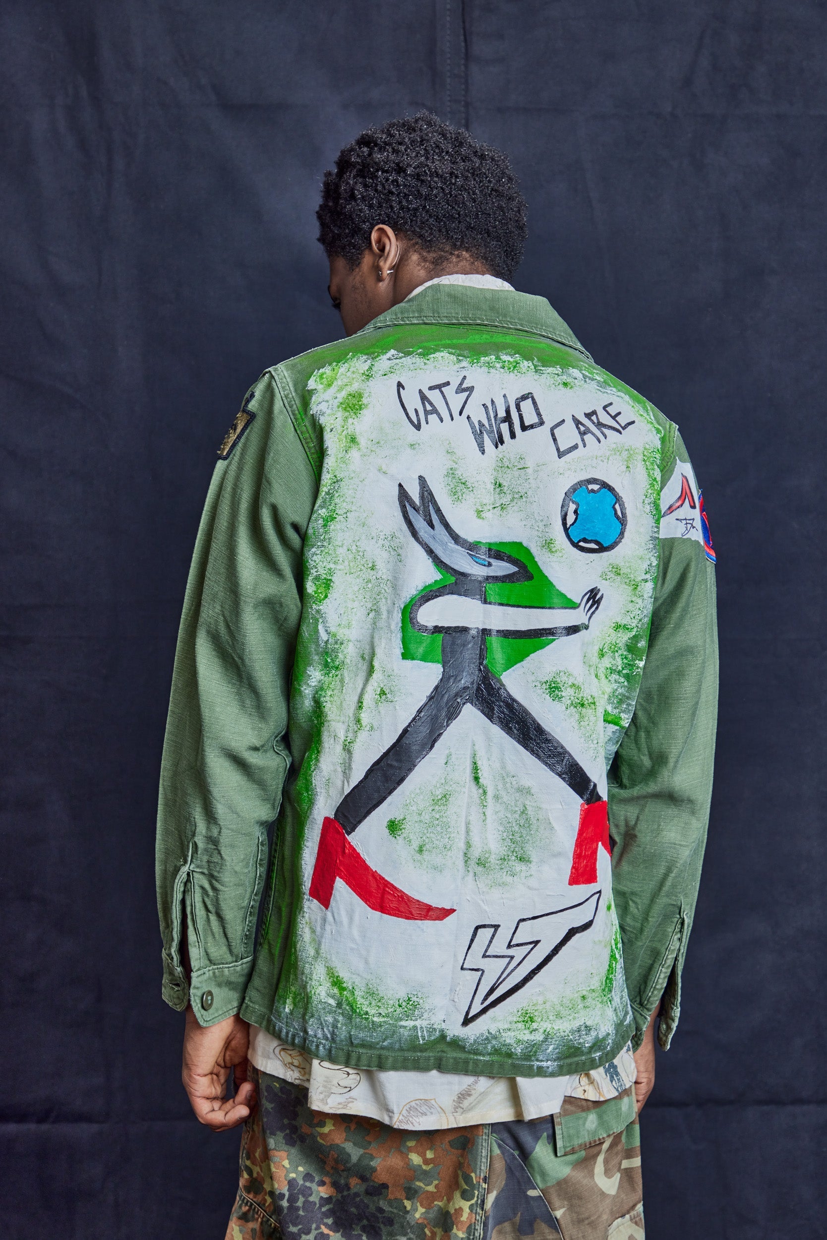 Original Vintage, 100% Cotton, Vietnam War-era Field Shirt. With Original artwork by Timothy Midnight on the back, "Cats Who Care".... Read more