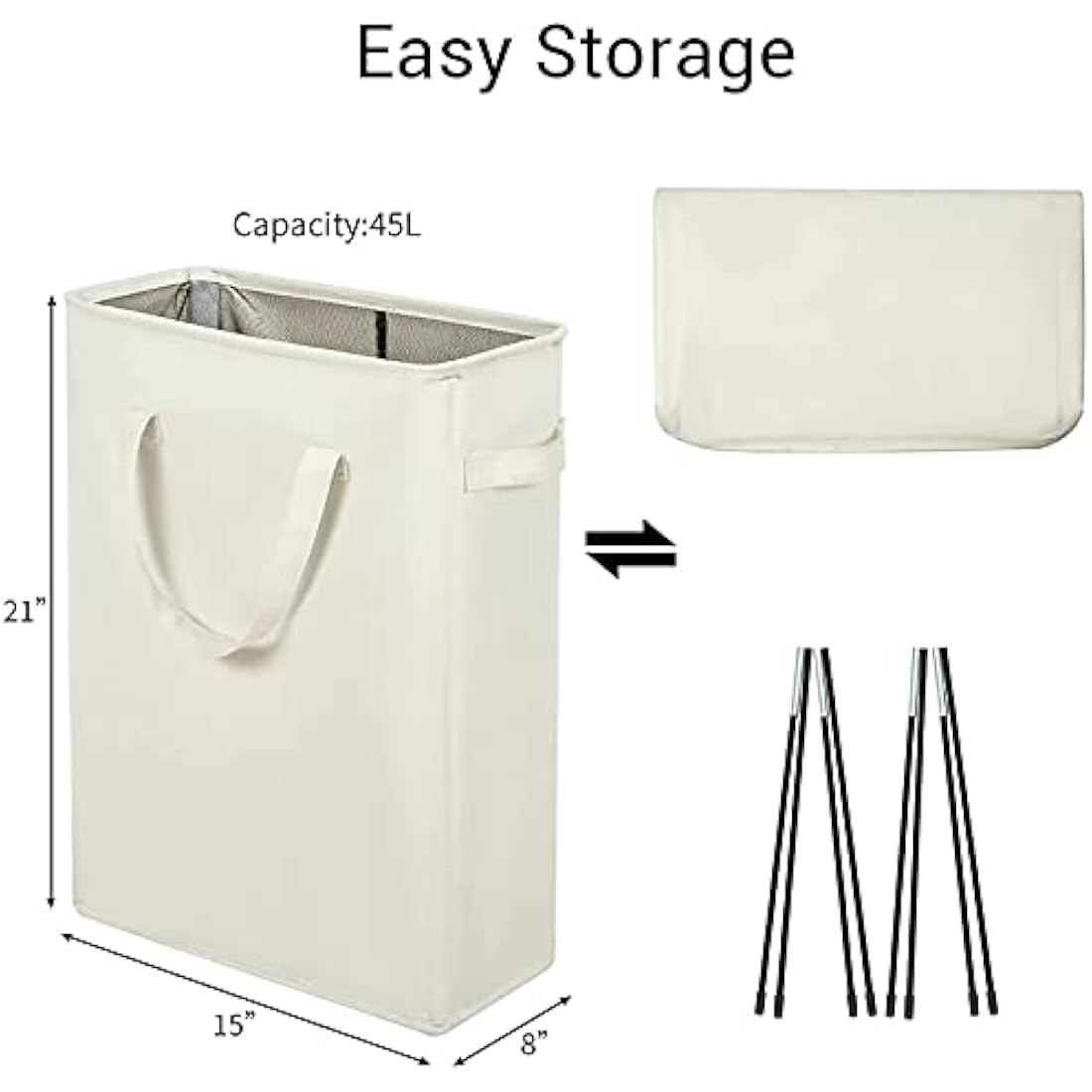 SLIM SHAPE: The size is 15"X8"X21"(not include handles). Our laundry hampers are in slim shape so we suggest you can... Read more