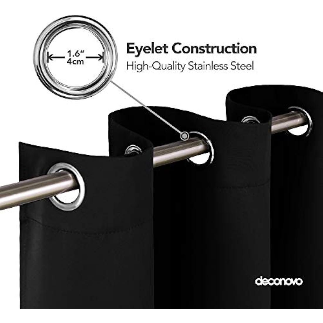 Deconovo Blackout Curtains Eyelet Super Soft Thermal Insulated Window Treatment Ring Top Blackout Curtains for Livingroom 66 x 90 Drop Inch Black 2 Panels