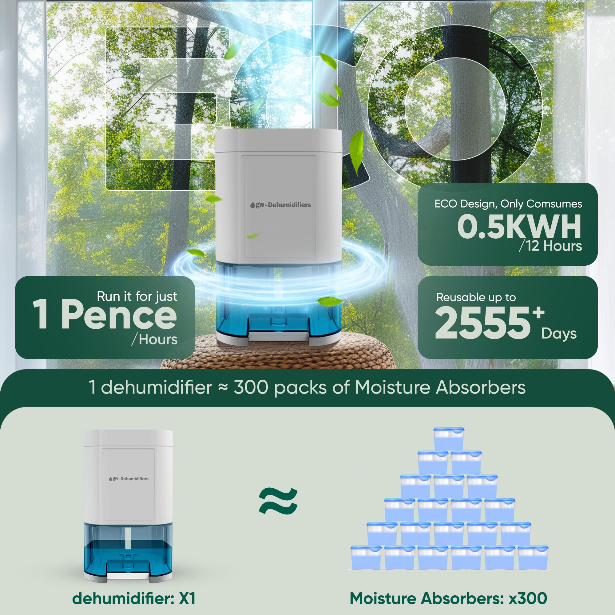 Dehumidifier for Home Damp 1000ML -GW-Remove Moisture Efficiently -Electric Dehumidifier for Bedroom -Sleep Mode & 6 Timer Options-Portable, Auto