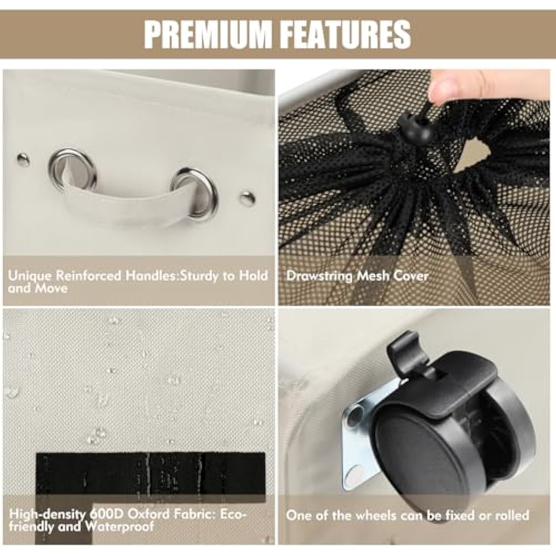 4 WHEELS - The laundry hamper on wheels is easy to move, brake on one of the wheels ensure safety... Read more