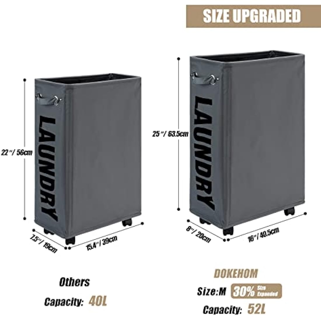 DOKEHOM 25-Inches Slim Laundry Basket on Wheels, Collapsible Rolling Laundry Hamper, Foldable Narrow Corner Clothes Storage Bins (Dark Grey)