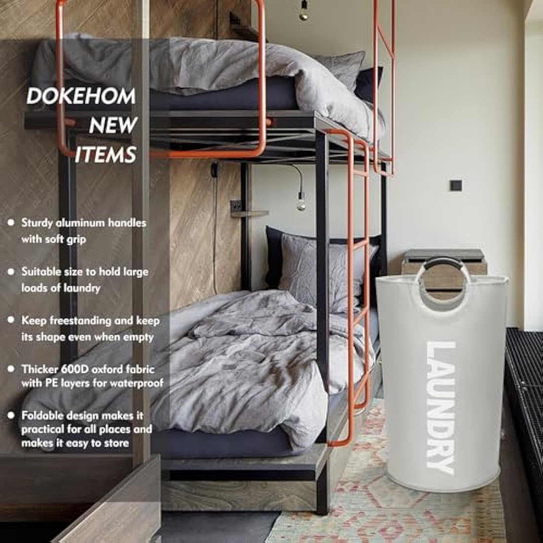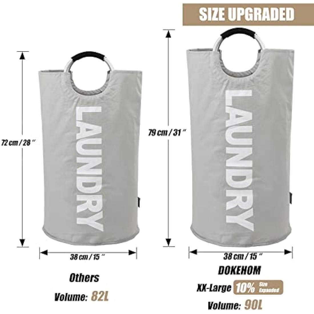 DOKEHOM 90L Large Laundry Basket, Collapsible Laundry Bag, Freestanding Tall Clothes Hamper, Foldable Washing Bin (Grey)
