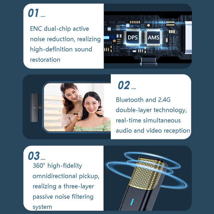 DS01 Outdoor Live Collar Microphone Collar Interview Recording Noise Reduction Wireless Microphone, Specification:, 8 Pin (Black), Type-C / USB-C (Black), Type-C / USB-C (White)