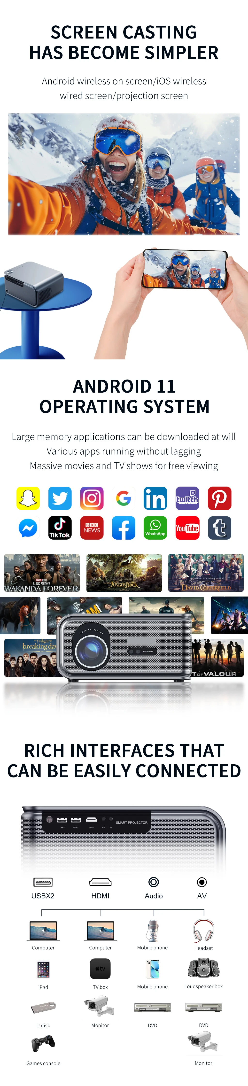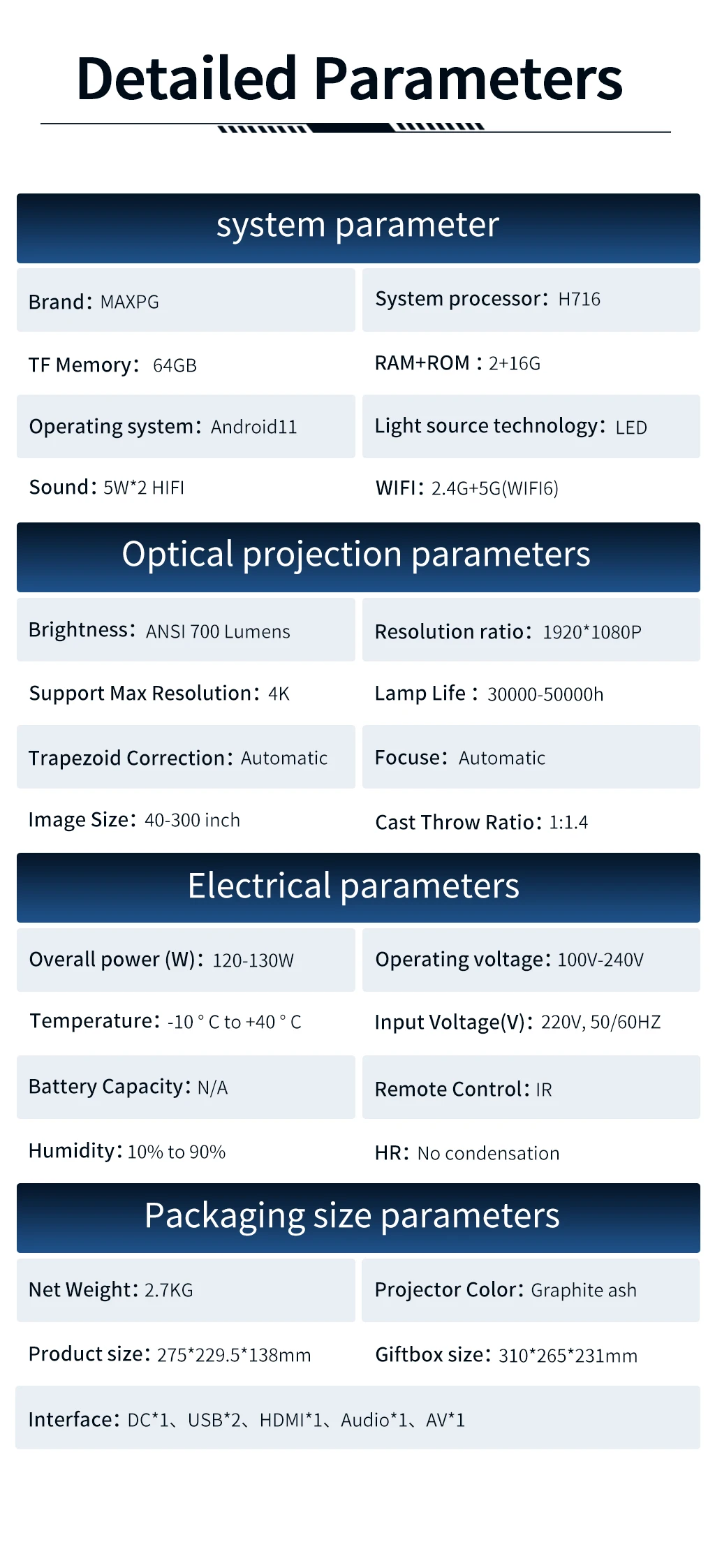 SPECIFICATIONSBuild in battery: NoneDTV regulator: DVB-T2Physical Resolution: 1080PProjector type: Lcdansi lumens: 700 lumensapplication: Home Theaterbrand name: MAXPGcontrast ratio: 2000:1feature: Built-In... Read more