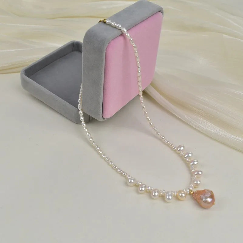 Elegant Natural Freshwater Pearl Necklace For Women Fashionable Minimalist Style Luxury Clavicle Chain Trendy Neck Jewelry