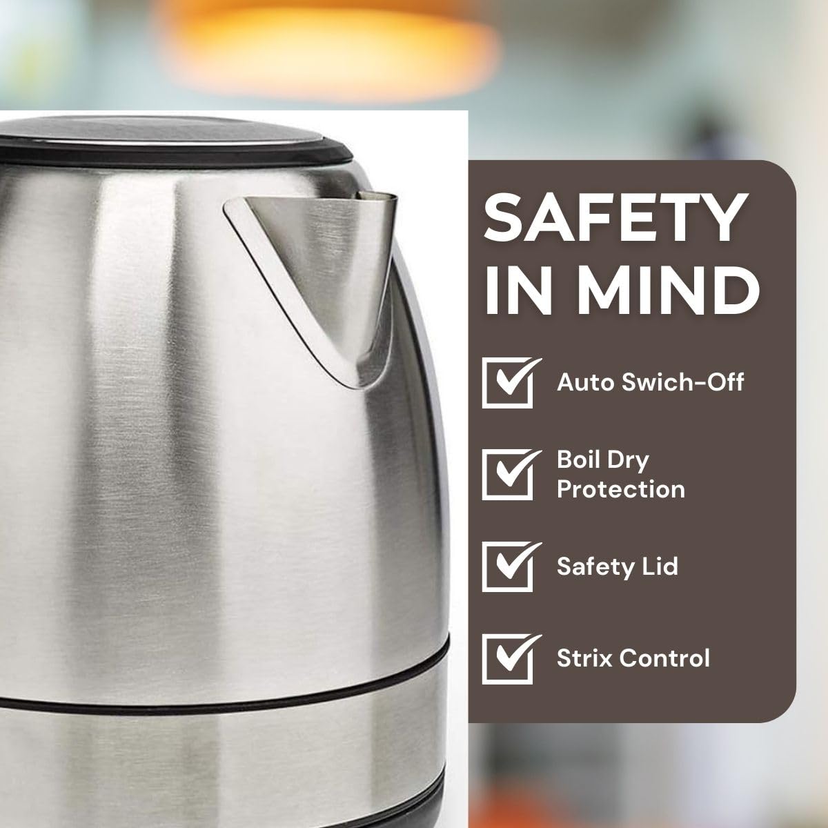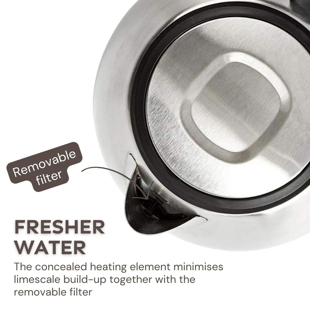 Ex-Pro Electric Kettle, 1.0L Capacity with Quick Boil Time, Boil-Dry Protection and Removable Filter for Fresher Water, 2150W - Stainless Steel