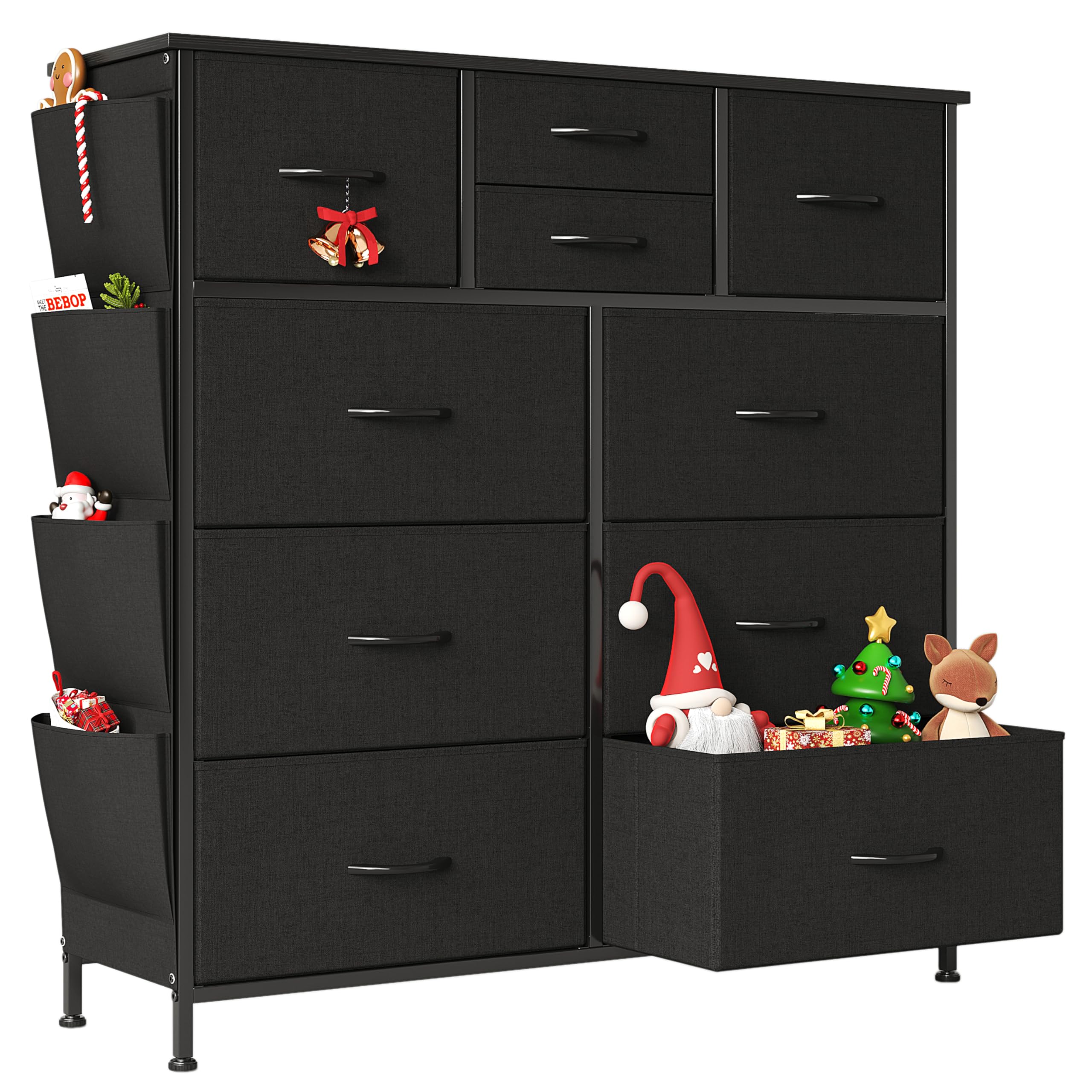 Flrrtenv Chest of Drawers, 100cm Wide Dresser for Bedroom with 10 Drawers, Fabric Storage Organizer Fit for Nursery, Living Room, Closet - Black