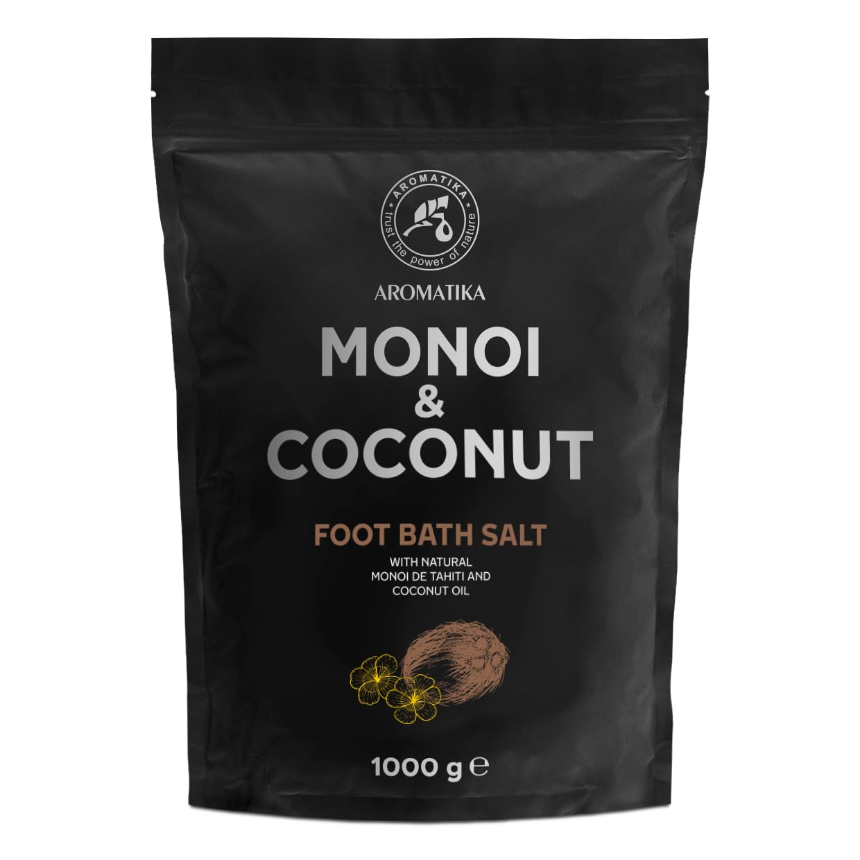 Foot Bath Salt Monoi de Tahiti - Coconut 1000g - Pedicure Foot Bath Salt - Foot Bath Additive with Monoi de Tahiti and Coconut Oil - Natural Sea Salt