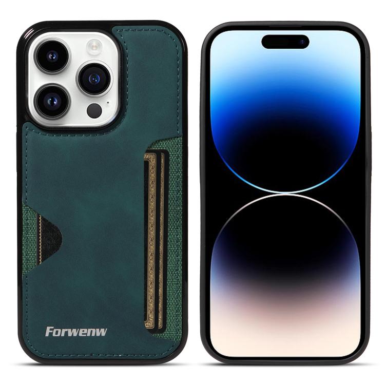 For iPhone 14 Pro Forwenw F5 Series Integrated Card Bag Phone Case(Green)