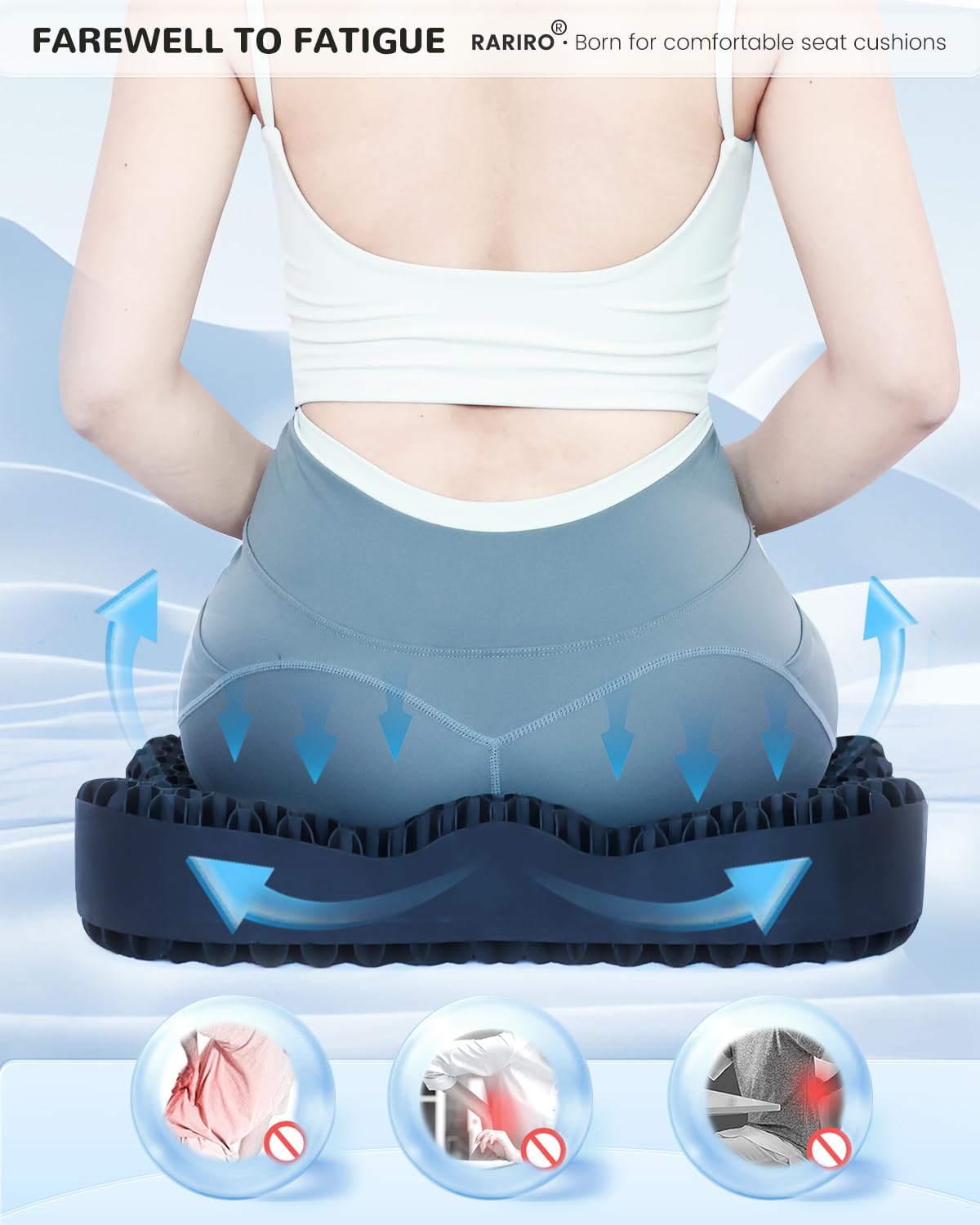 Features 【EXTRA - LARGE AND EXTRA - THICK ERGONOMIC STRUCTURE】: The RARIRO cushion is meticulously designed to relieve the discomfort... Read more
