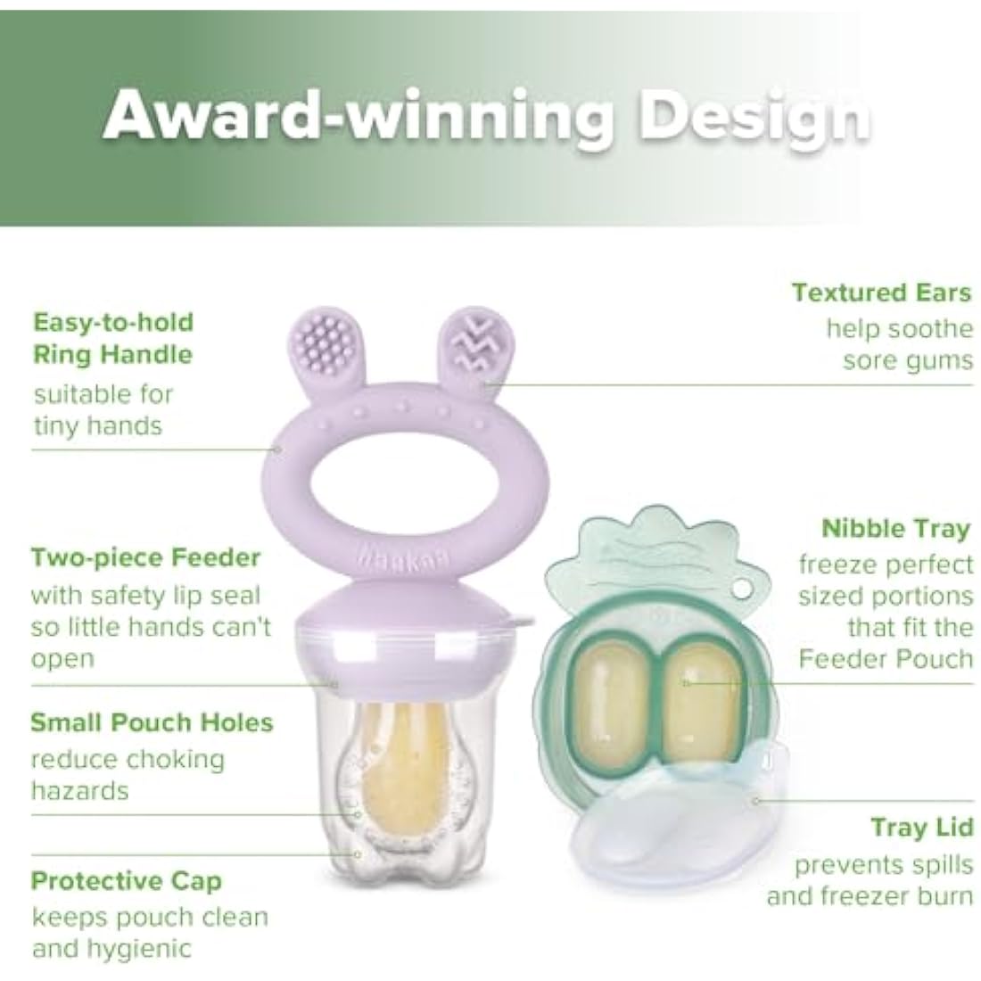 Haakaa Baby Fruit Food Feeder & Mini Freezer Nibble Tray Combo, Breastmilk Popsicle Molds for Baby Cooling Relief, BPA Free Silicone Feeder for Safe Infant Self Feeding, 4 Month+ (Lavender)