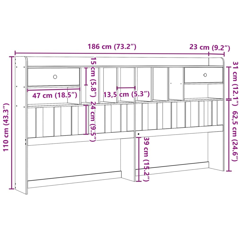 Headboard with Storage Wax Brown 180 cm Solid Wood Pine