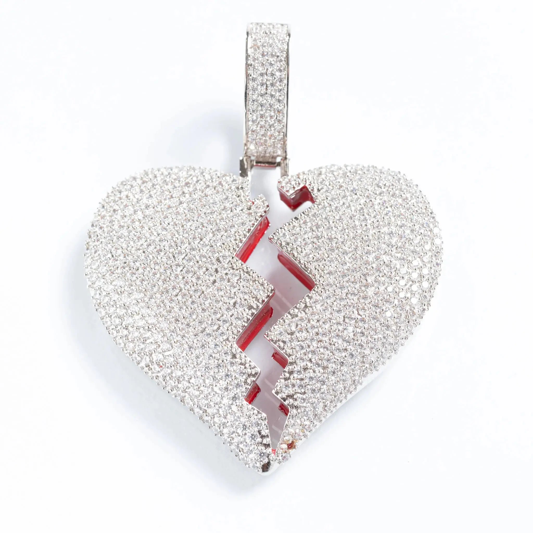 Iced Broken Heart Pendant - White Gold