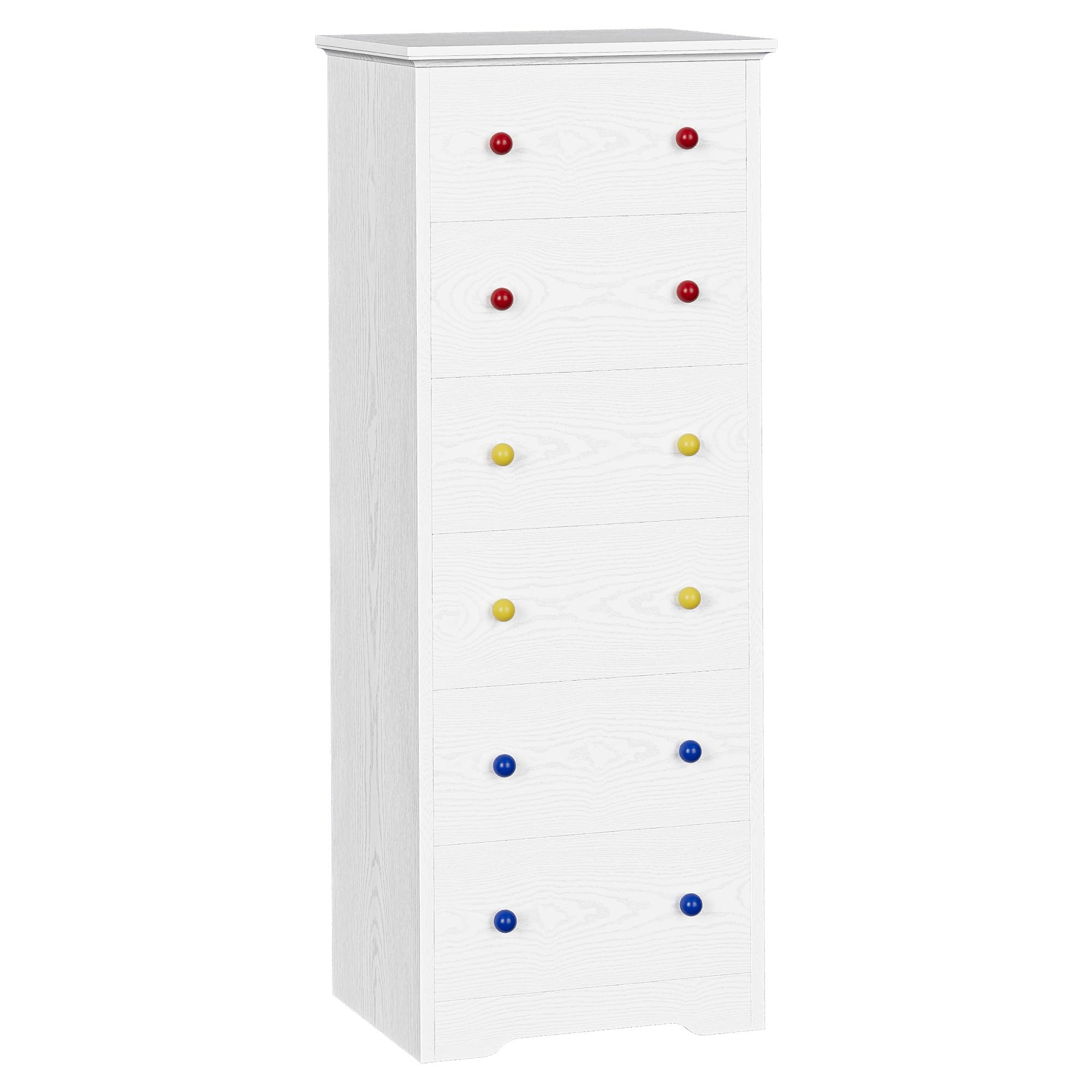IRONCK Chest of Drawers with 6 Drawers Tall Storage Cabinet, White Chest of Drawers Bedroom, Wooden Cupboard for Bedroom Living Room Hallway,