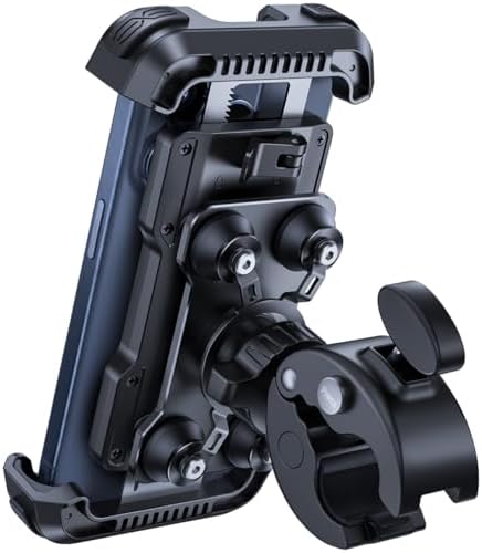 🏆【Unique Dual Anti-Shock Design - Patented Shock Absorber】: The Lamicall 2025 anti-shock motorcycle phone mount features an exclusive dual anti-shock design. While most others lack specialized shock absorbers, our holder combines patented shock absorber with silicone airbags, minimizing motorcycle vibrations to protect your phone and camera perfectly. It'd be the best motor holder, no more worry about your phone breaking with the high-frequency vibrations, just enjoy the speed. 🏍️【1s Installation - Quick Release Clamp】: This phone mount for motorcycles features the latest quick release clamp, requiring no tools for quick installation. Press the button to open the clamp and easily grip the handlebar. Then just tighten the screw to start your motorcycle journey! And it can rotate 480°, allowing you to adjust the phone to different angles . ❗ Note: The handlebar adaptability range is 15-40mm, widely used on motorcycles, electric bikes, bicycles, scooters, wheelchairs. 🏍️【One-Hand Operation & Safety Lock】: Adopt a dual-arm automatic retraction design, the 2 arm of our bike phone holder will automatically contract to firmly grip the phone. Thus unlike other ordinary four-corner retraction mounts, the better integration of our clamp ensure more uniform force and longer product life. And equipped with a handy safety lock, you can just rotate the switch on the back to lock the phone in place. Even at high speeds on bumpy roads, the phone can be securely fixed. 🏍️【Full Protection - EVA Silicone Coated】: This anti-shock motorbike phone holder is wrapped with thick EVA resin silicone on all four corners and surfaces, providing all-round protection for your phone and preventing any scratches or sliding. Even during emergency braking, bumpy roads, or sharp turns, the motorcycle phone mount can be securely connected to the handlebar, and will not fall off while riding. 🏍️【Wide Compatibility】: The universal phone holder for bike is compatible with 4.7-6.7 inch devices, such as the iPhone 16/15/14 Pro Max Plus, iPhone 13/12 Pro Max Mini, iPhone 11 Pro Max, Xs, Xs Max, XR, X, 8, 7, 7 Plus, Huawei Mate 60 50 Pro, P60 Pro P50 P40 P30 Pro, Samsung Galaxy S25, S24, S23, S22, S21, S20, S10 S9 + S9, LG, HTC, Nokia, Nexus, and other smartphones. ❗ Note: The max thickness that the phone clip can hold is 0.59". Galaxy S25/S24/S23/S22 Ultra should use without case. The max height/ width of the phone clamp is 6.54" (166mm)/ 3.11" (79mm)