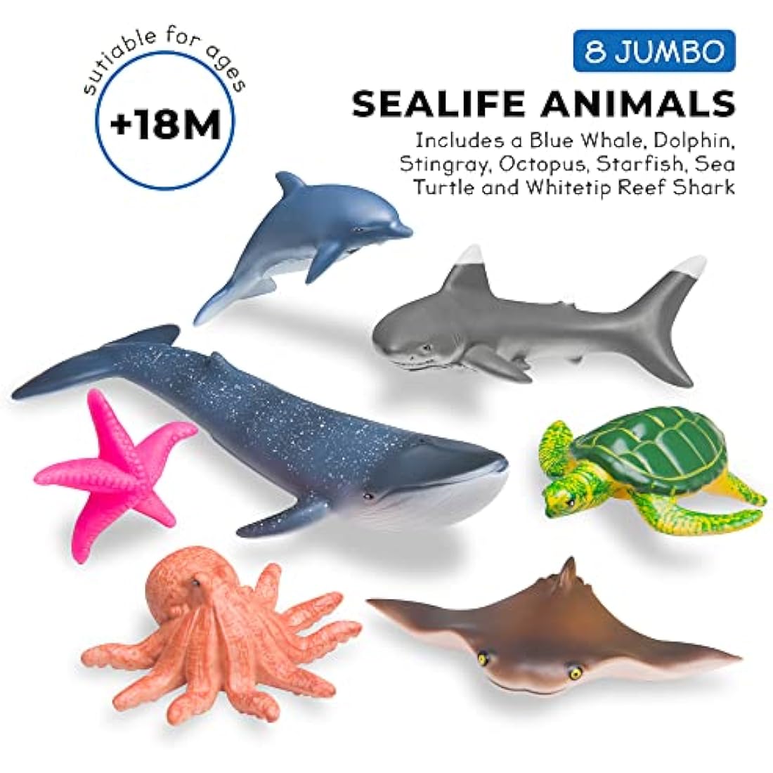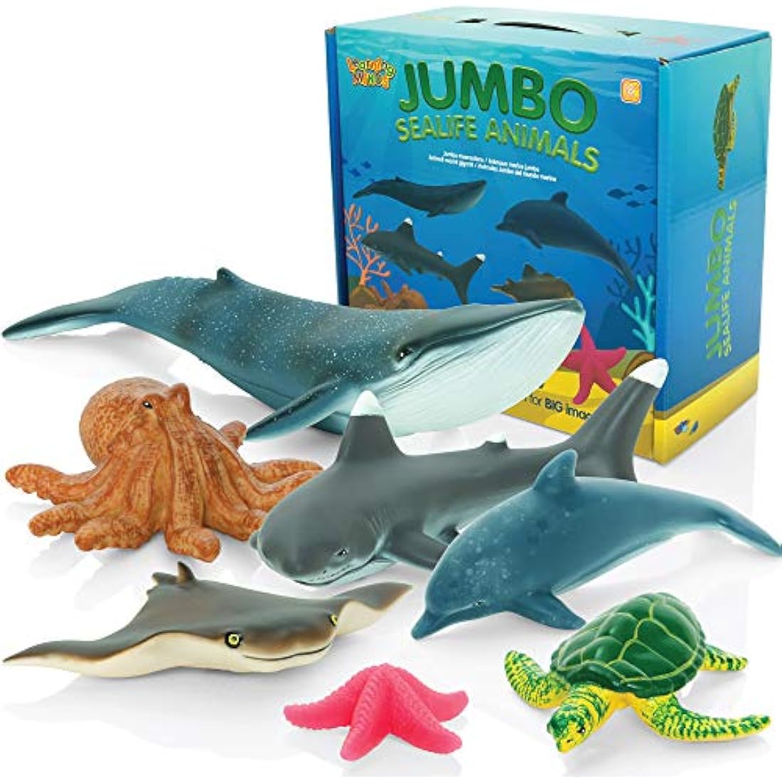 Learning Minds Jumbo Sea Animal Figures - Set of 7 Educational Fish Toys For Children - Shark, Whale, Dolphin Toys For Kids - Toy Fish & Sea Creatures For Children - Suitable From Age 18 Months