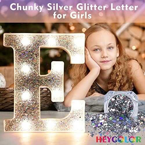 LED Marquee Letter Lights, Light Up Silver Letters for Bedroom Glitter Gifts for Teenage Girls Alphabet Letter Sign Battery Powered Night Light Birthday Party Wedding Home Decoration, Silver Letter C