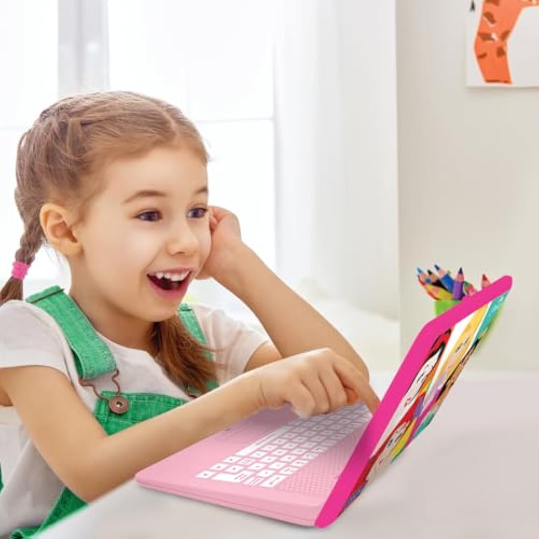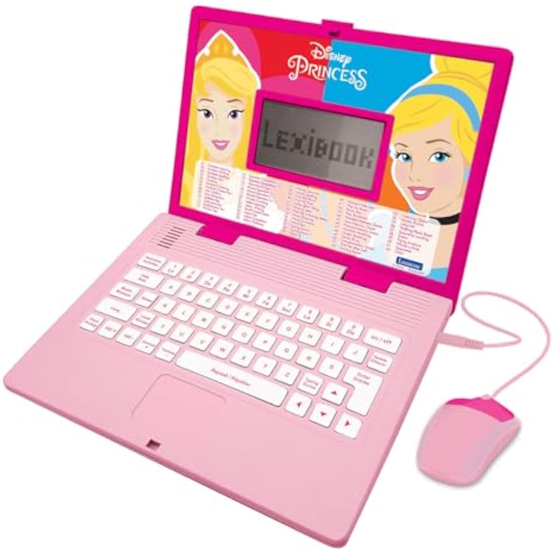 LEXIBOOK, Disney Princess, Educational and Bilingual Laptop French/English with 124 Activities: Mathematics, Dactylography, Logic, Clock reading, Play Games and Music, Pink, JC598DPi1