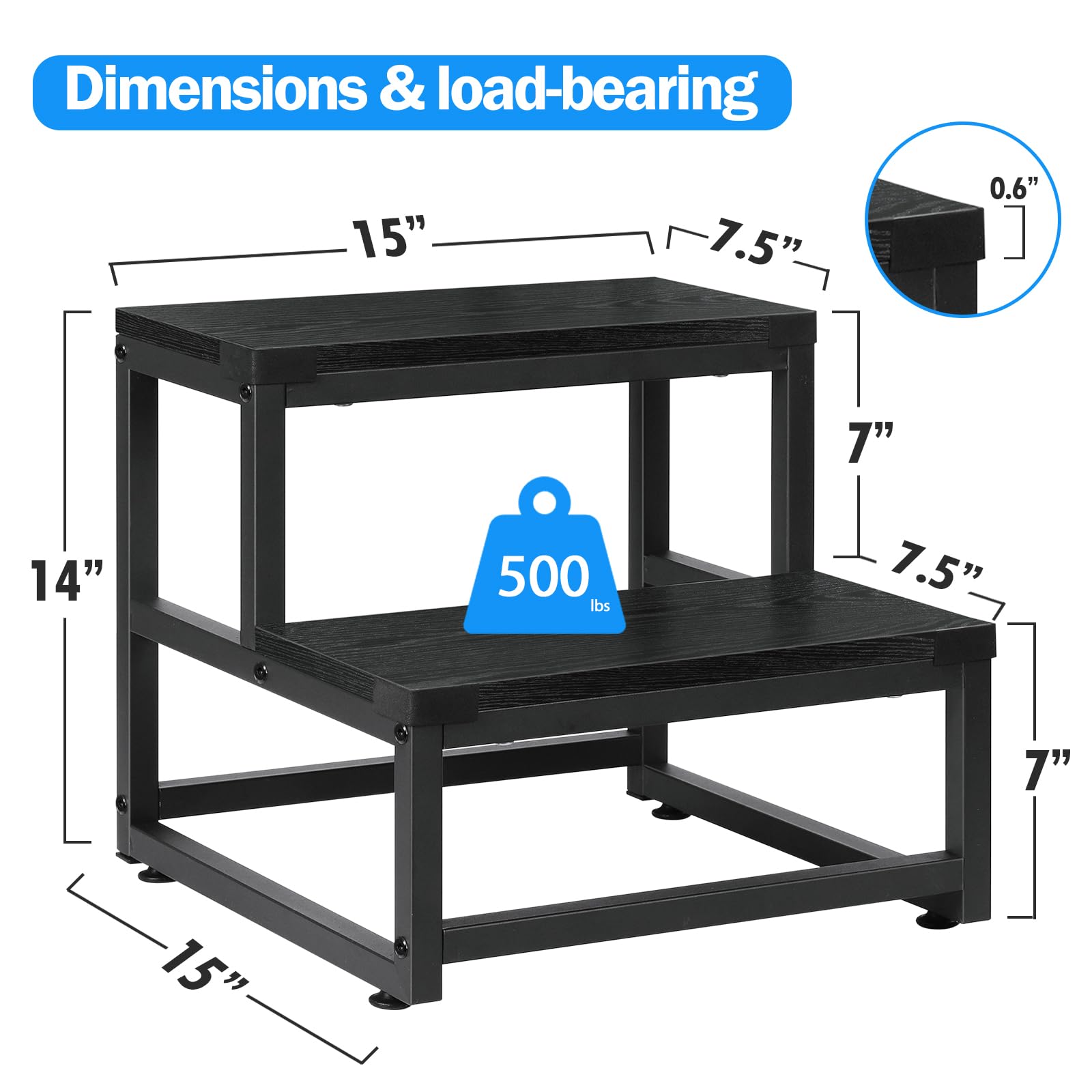 LIANTRAL Step Stool for Adults and Kids, 2 Step Stool, Heavy Duty Steel and Sturdy Wooden Stool, Load Capacity up to 200 kg, Foot Stool for Bed,