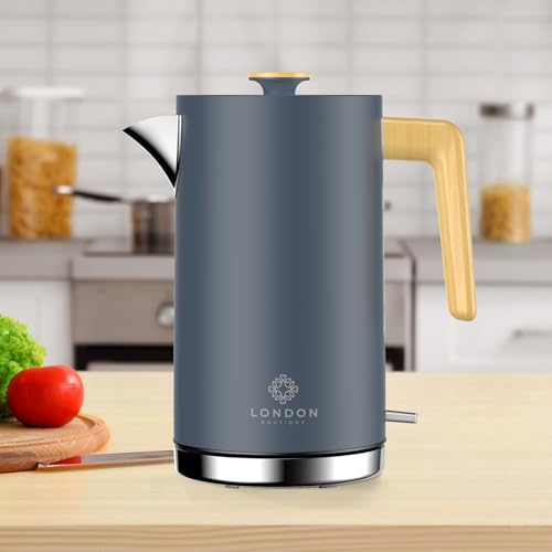 London Boutique Electric Kettle, Stainless Steel kettles Electric, Cordless Fast Boil Electric kettle with Wood Effect, Boil Dry Protection,