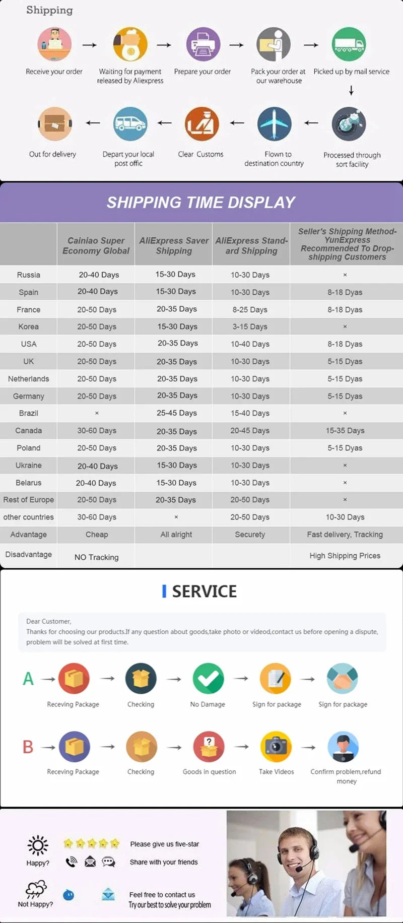 Orders can be returned or exchanged within 30 days of receiving the parcel, providing they are in original resalable condition.